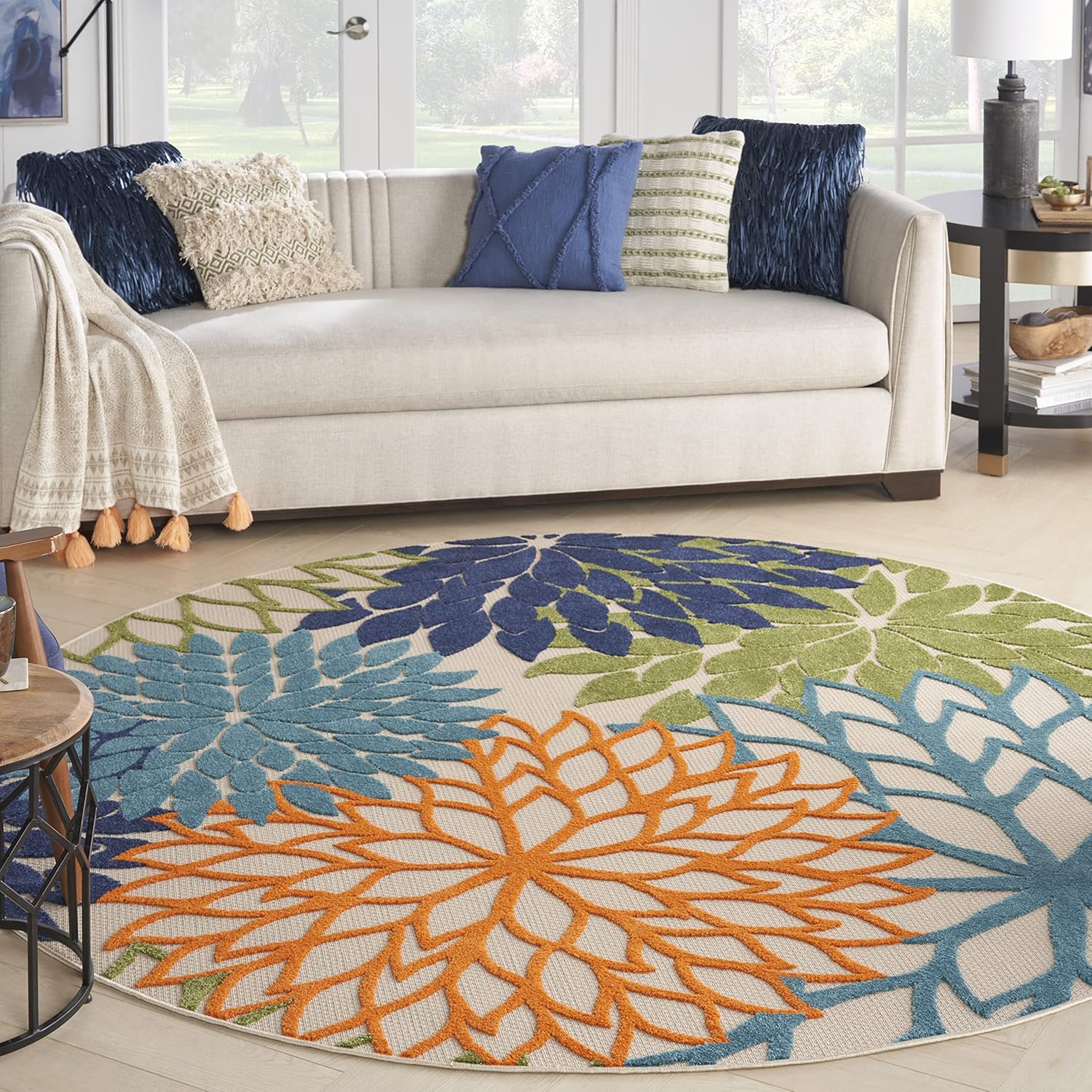 Nourison Home Aloha 10' x Round Multicolor Fabric Tropical Area Rug (10' Round)