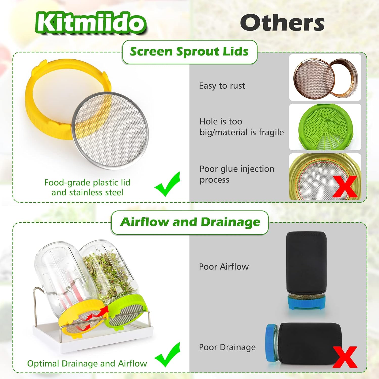 - 🌱HIGH-EFFICIENCY SPROUTER&GERMINATOR - Our sprouting stainless steel stand provides optimal drainage and airflow angles for jars, and keeps seeds&sprouts from rotting. Make your seeds sprout successfully every time, even a novice can sprout easily! Also, the shade sleeves will allow you to grow longer, straighter, and sweeter soybean sprouts.