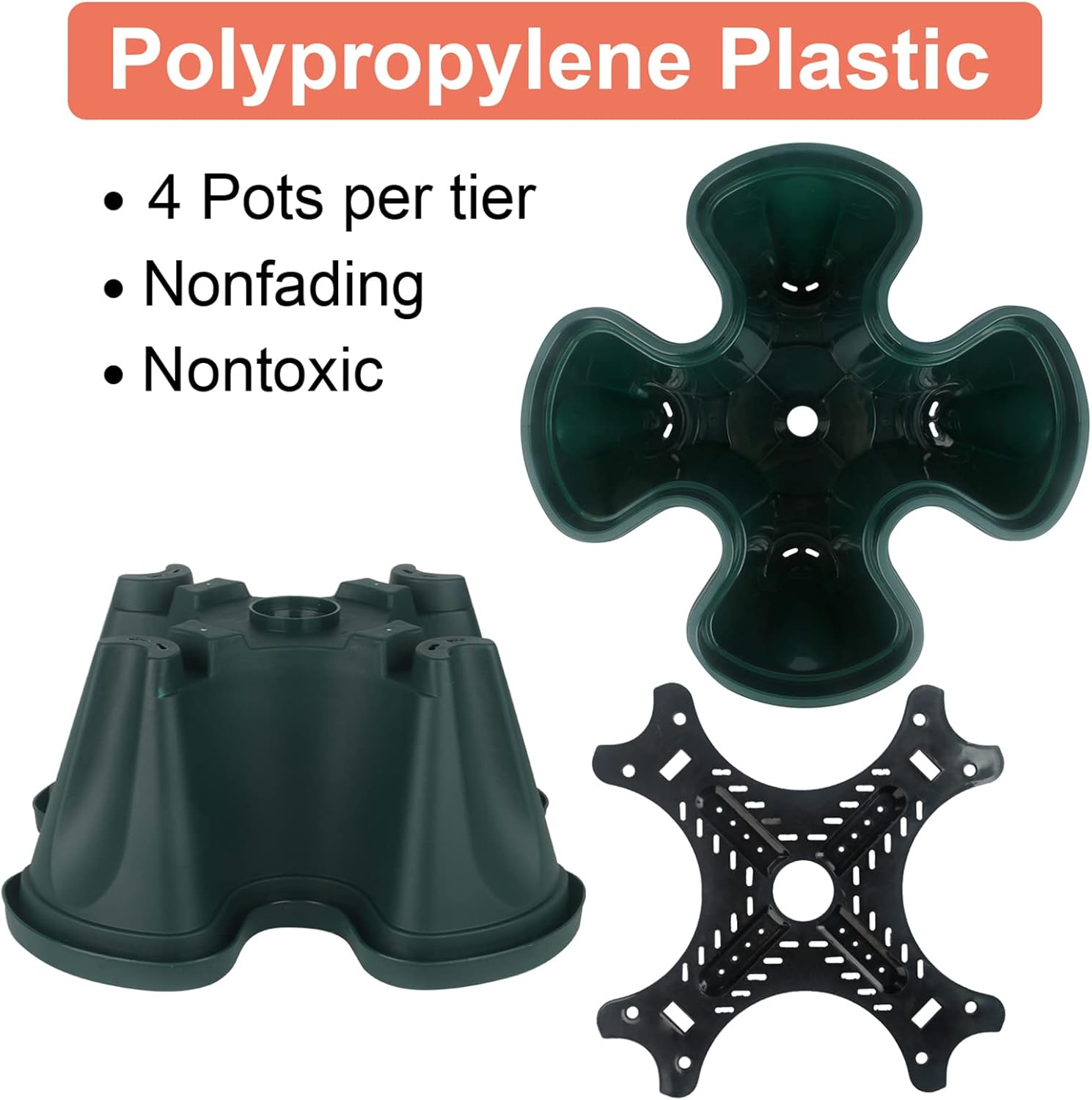 DUNCHATY Stackable Planter, Vertical Garden Planter with Wheels and Tools, Self Watering Strawberry Planter Indoor/Outdoor 3 Tier Herb Planter Pots for Growing Vegetables and Succulents,Pine Green