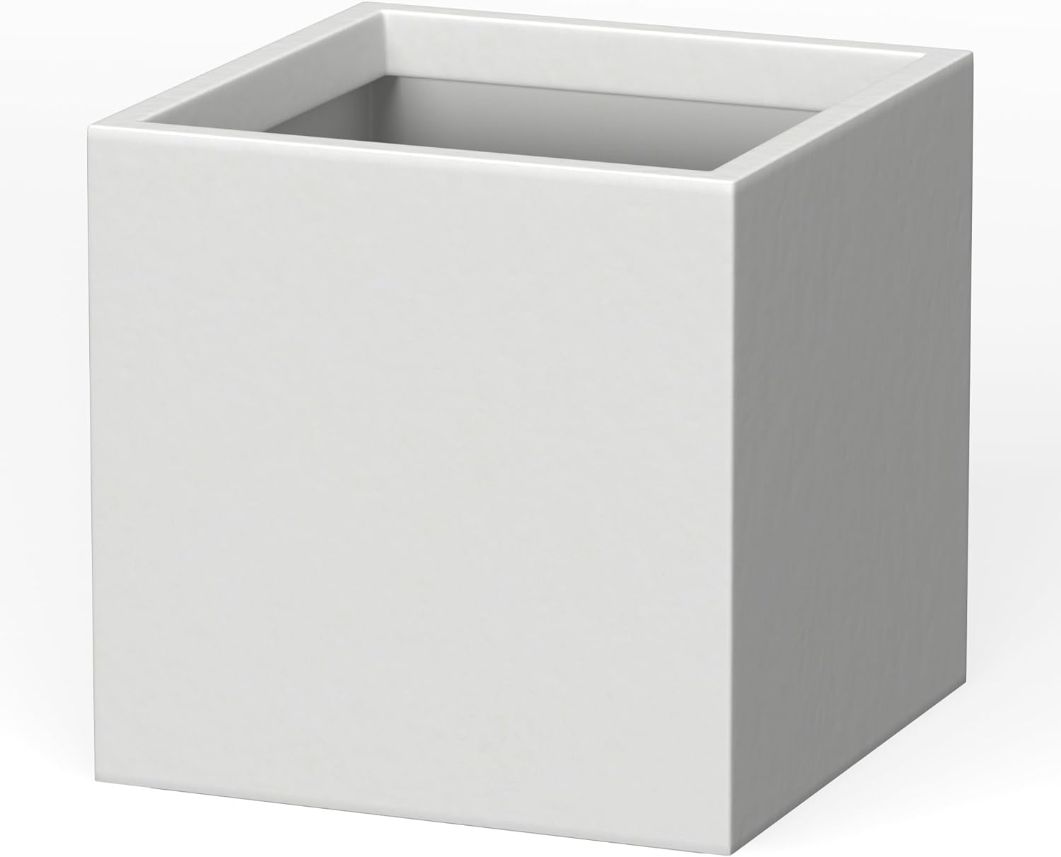 Kante 12 Inch Square Concrete Planter for Outdoor Indoor Home Patio Garden, Large Plant Pot with Drainage Hole and Rubber Plug, Pure White