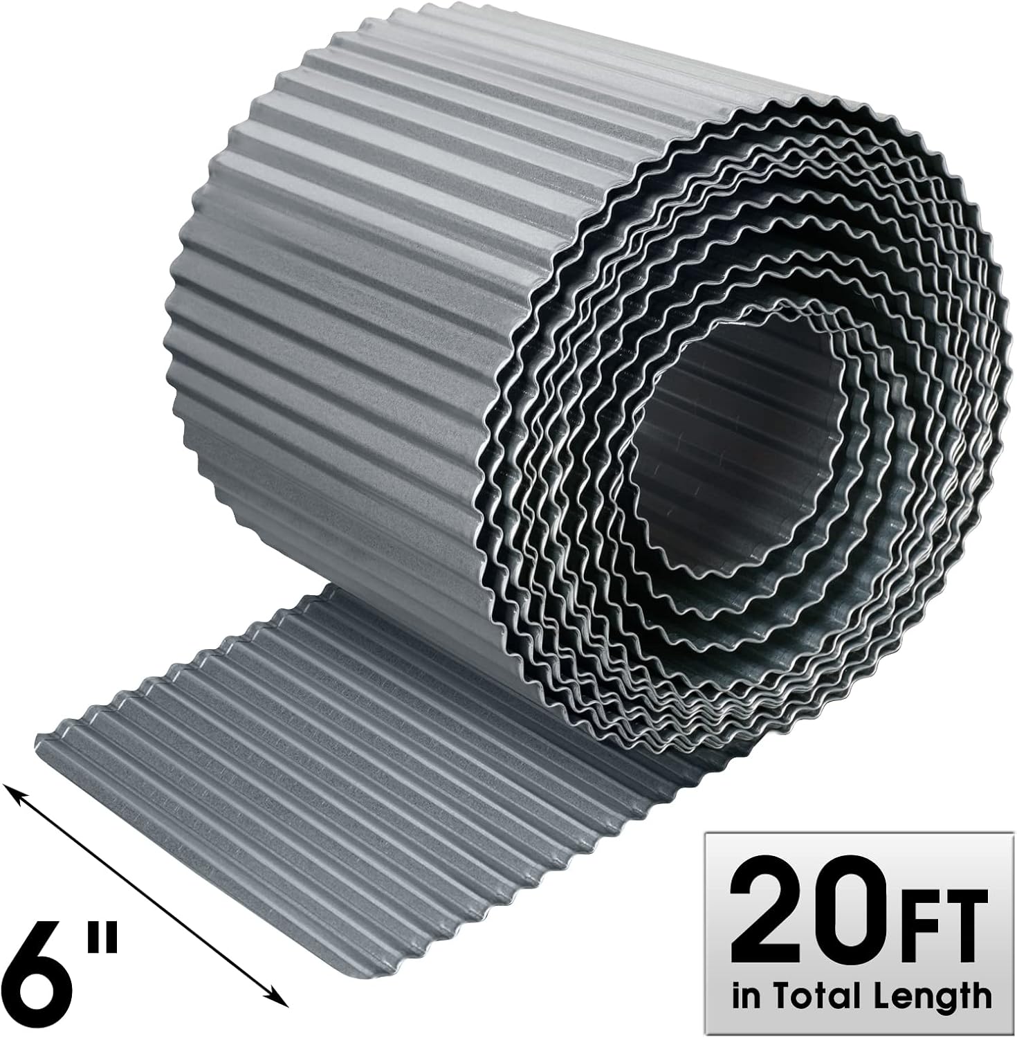 Worth Narrow-Corrugated Garden Edging, 6" x20Ft Sturdy Galvanized Steel Landscape Edging Bendable Metal Lawn Long Strips of Garden Border for Raised Flower Bed Tree Surrounds, Silver