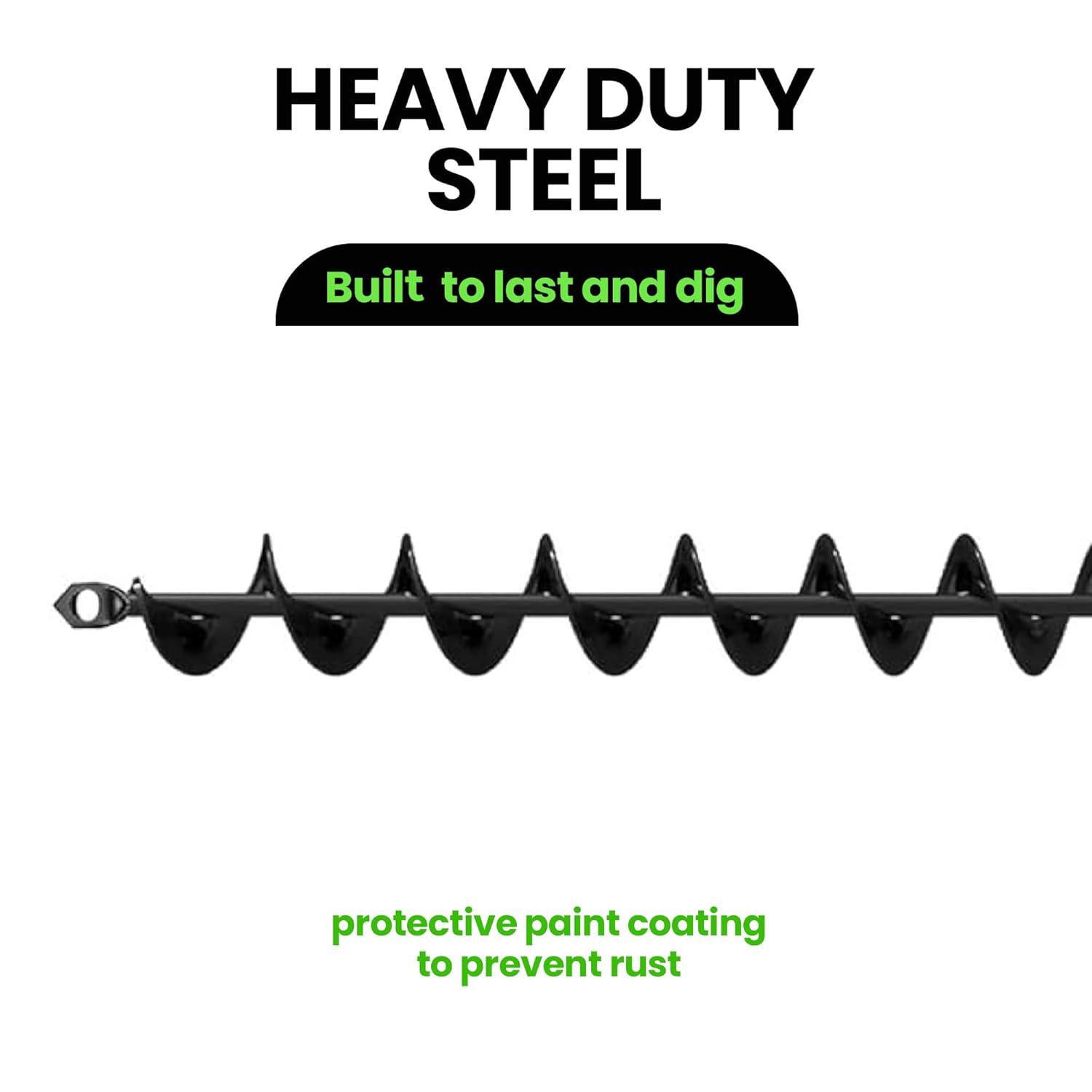 - No More Squatting: Our extended 32-inch auger features seven spiral blades, designed to handle all the hard work for you. Experience the ease of digging without the strain on your back or knees. Crafted from heavy-duty steel, it effortlessly works on loose soil, hard ground, sand, clay, and even ice