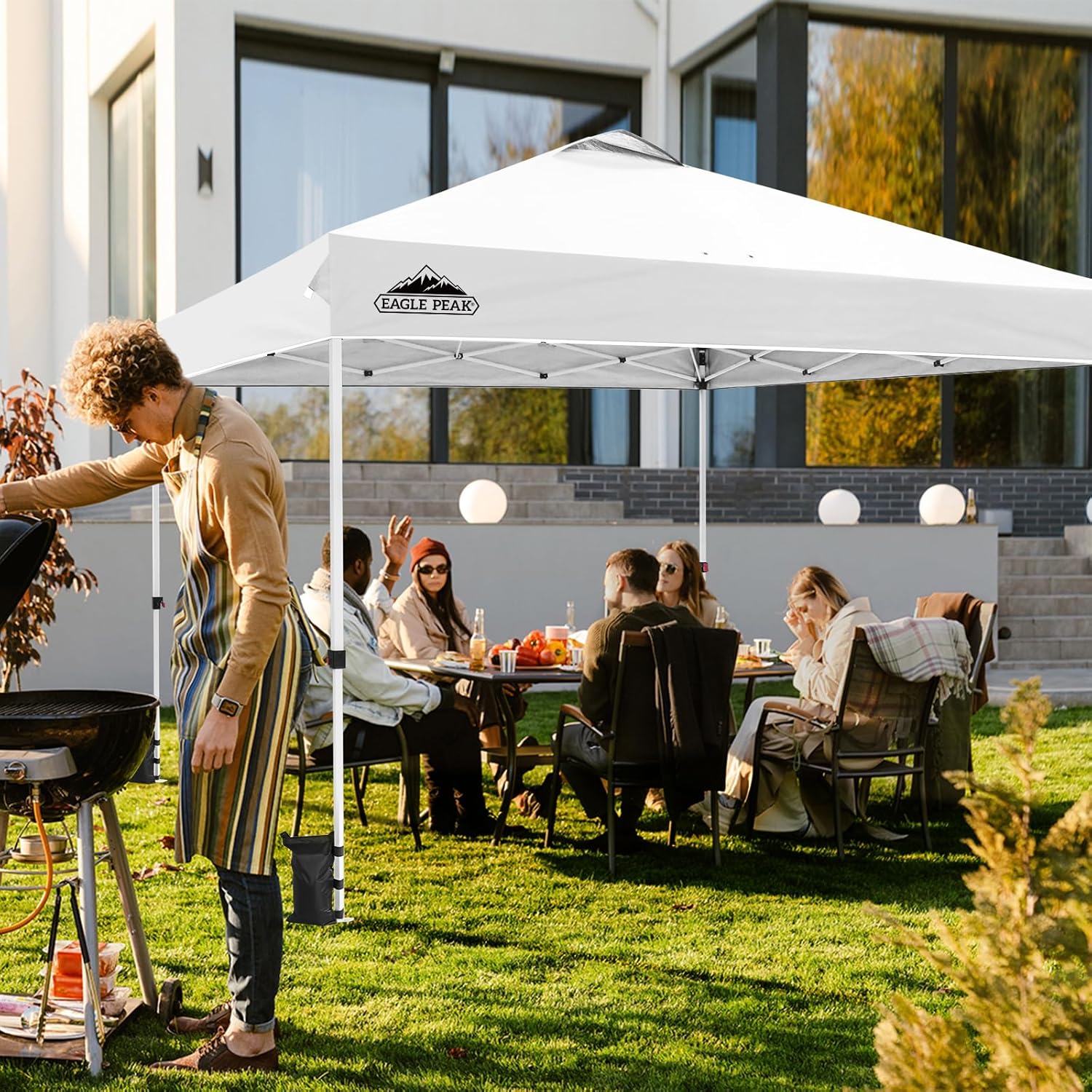 EAGLE PEAK Pop Up Canopy Tent with Wheeled Carry Bag, 8 Stakes, 4 Ropes, 4 Weight Bags, Easy Set Up Tent Canopy, 12x12 ft, 144sqft of Shade, White