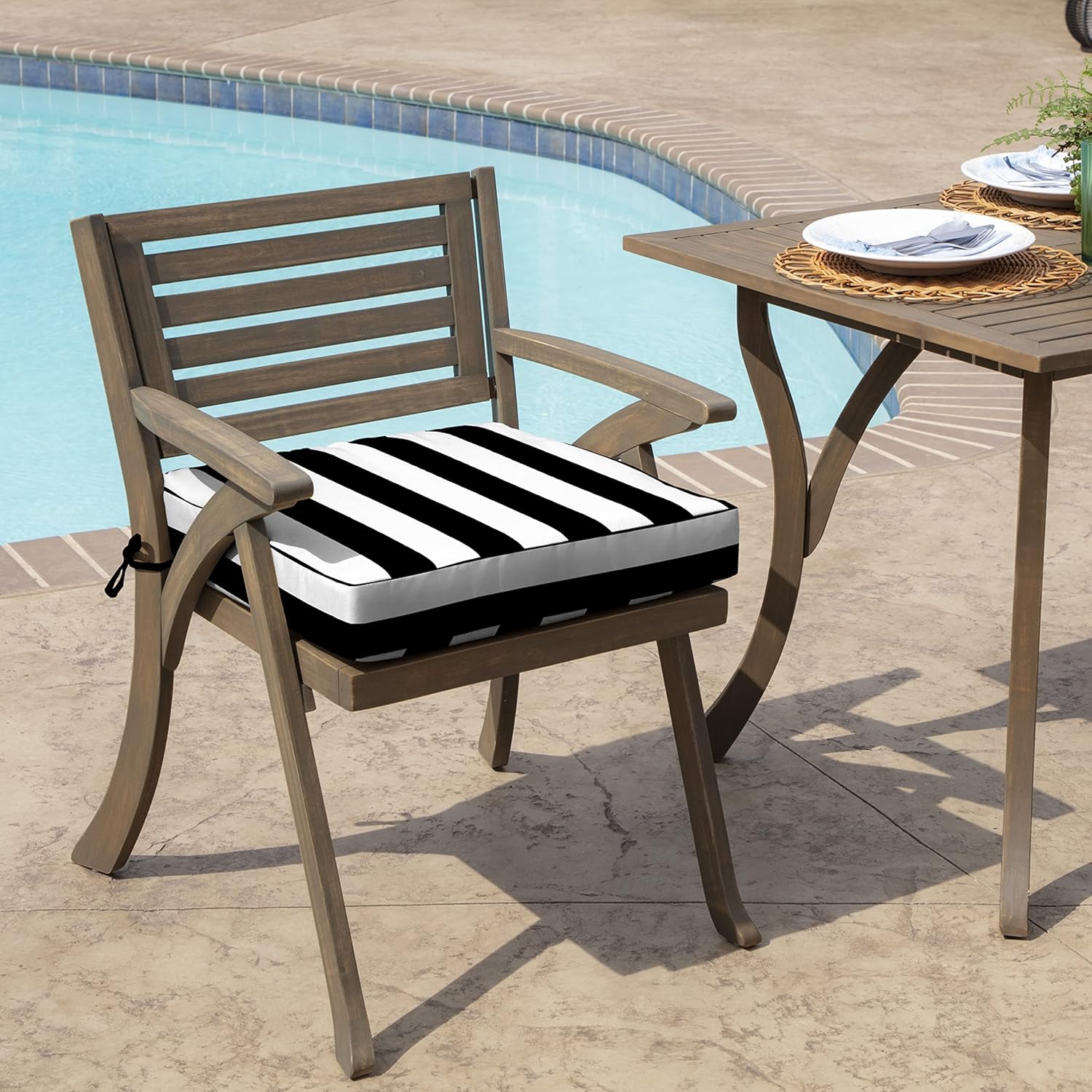 Arden Seat Cushion, 21 x 21, Rain-Proof, Fade Resistant, Cushion for Patio Dining, Adirondack, and Outdoor Chairs Black Cabana Stripe