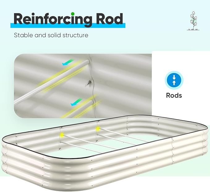 - 【Double Strengthened】Due to vertical bar and crossbar in the middle of ground garden box, the structure of galvanized steel raised garden bed is more stable, it has bigger capacity of weight than others. It won't crack and bulge at joints of 2 metal sheets, provide your plants a long-lasting home.