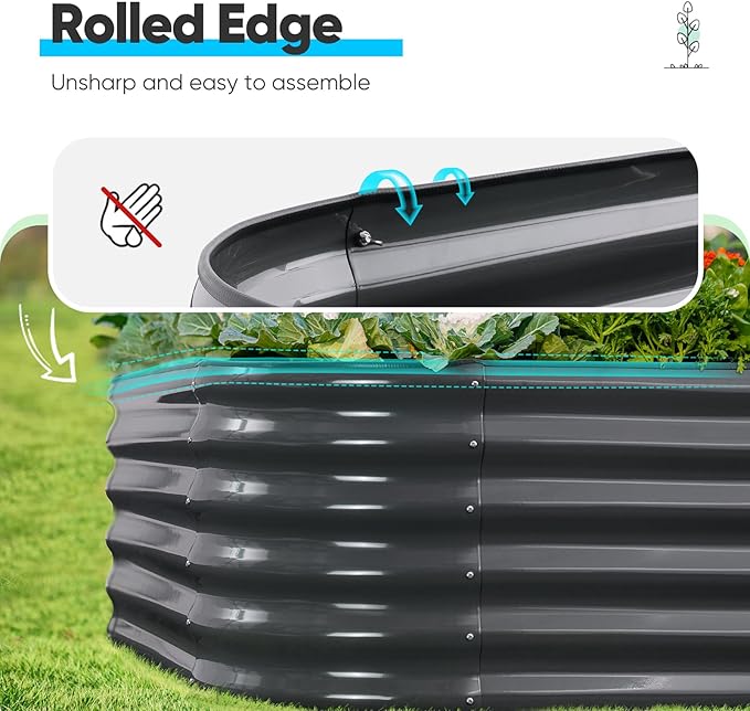 - 【Rubber Strip Edging】Garden bed kit includes a rubber strip for covering sharp edge, it is safe when you and your family growing plants, watering or plucking fruits. You can use them without any caution, even children can get as close as possible to learn and take care of plants.