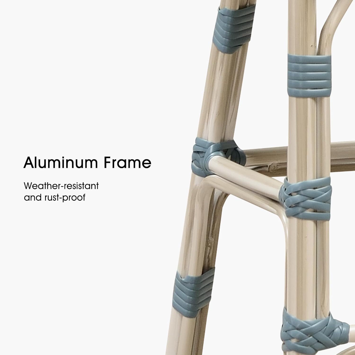 PURPLE LEAF French Counter Height Bar Stool Set of 2 25" White Print Finish Patio Bar Chairs with Back Rattan Bar Chairs French Bistro Set for Kitchen Outdoor Counter Stool Light Blue