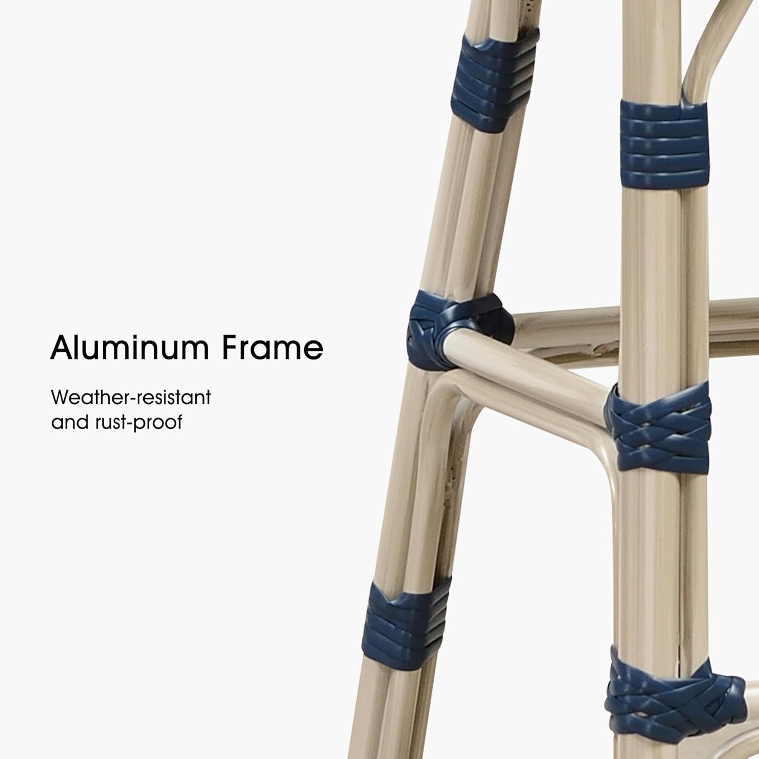 PURPLE LEAF French Bar Stool Set of 2 White Print Finish Patio Bar Stools with Back Rattan Chairs Wicker Bar Height Stool 30" with Footrest Kitchen Island Stools Outdoor Barstool Royal Blue