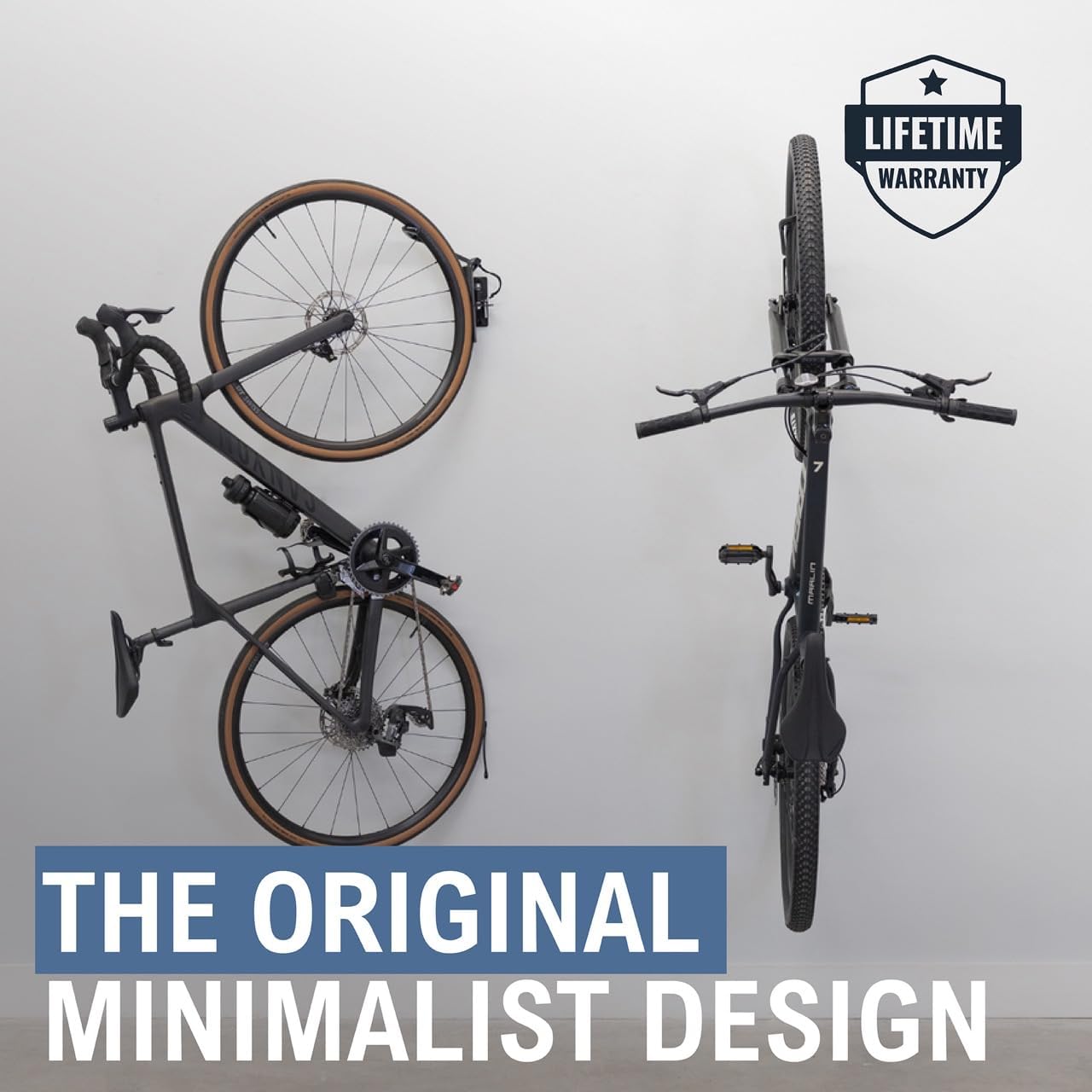 • WALL-MOUNTED BIKE STORAGE – Reclaim your garage, shed, or apartment space with this space-saving vertical bike rack. Designed to mount securely to wall studs, each rack stores one bicycle flat against the wall, making it ideal for indoor bike storage in tight spaces. Compatible with a variety of bikes including road bikes, e-bikes, folding bikes, and more. Fits tires up to 2.6" wide and up to 29" in diameter.