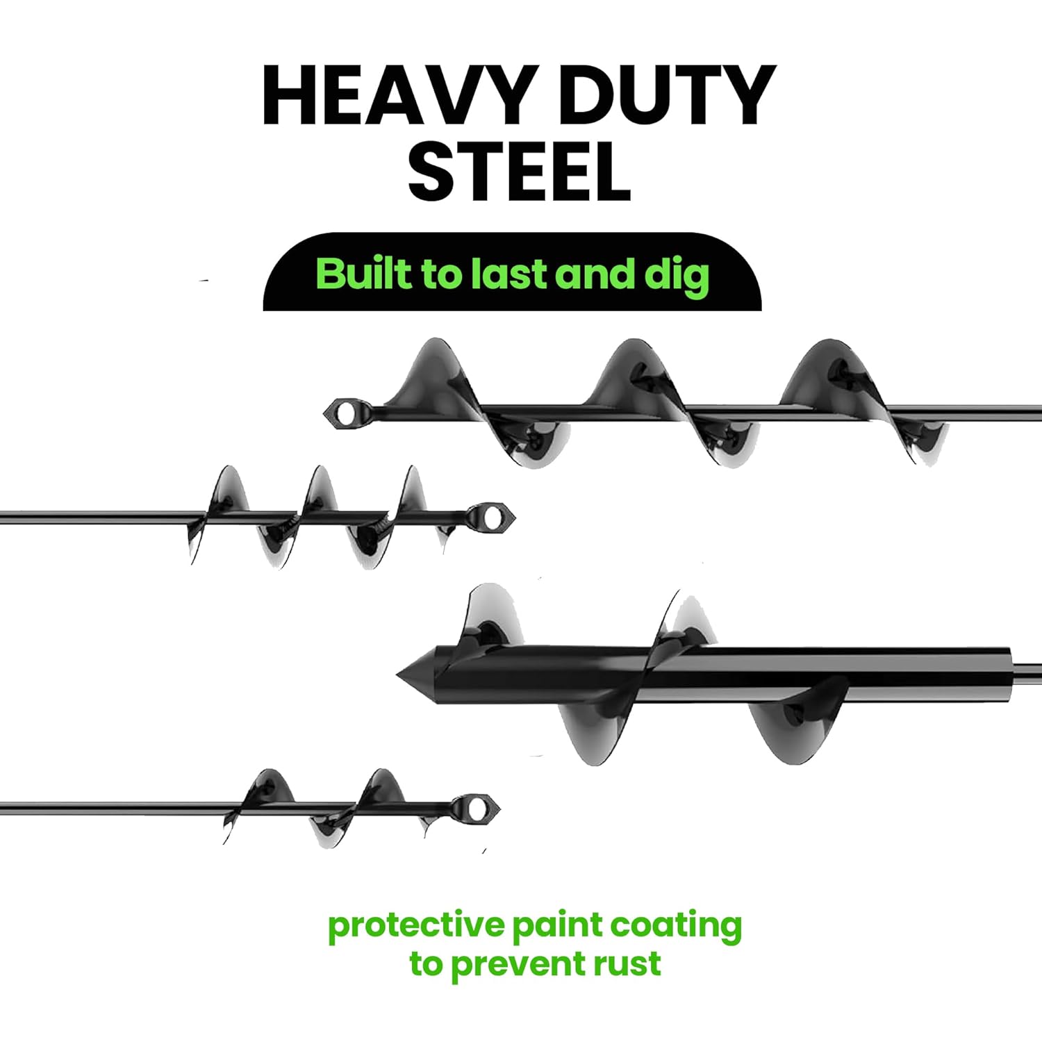 - Ditch Your Trowel for Good: Say goodbye to your gardening shovel! With four different sizes crafted from high-quality, heavy-duty steel, each garden drill planter is designed to do the heavy lifting for you, making digging effortless and enjoyable. These augers work flawlessly on loose soil, hard ground, sand, clay, and even ice