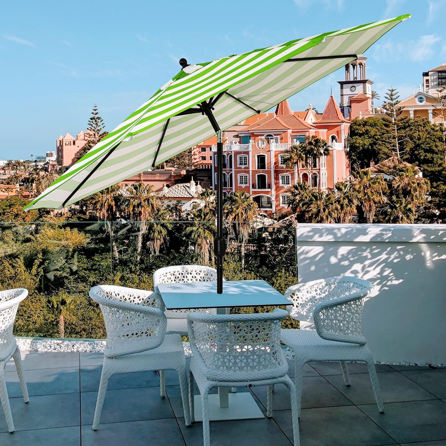 - Easy crank open function with push button tilt, keeping cool and comfortable form the sun.