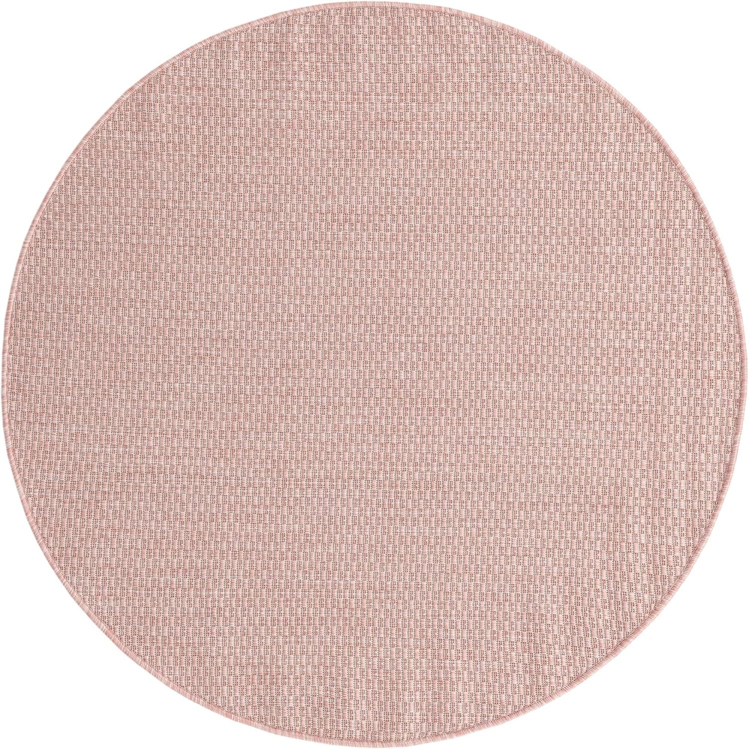 Unique Loom Collection Casual Transitional Solid Heathered Indoor/Outdoor Flatweave Area Rug (4' 1" Round, Whisper Pink/Ivory)