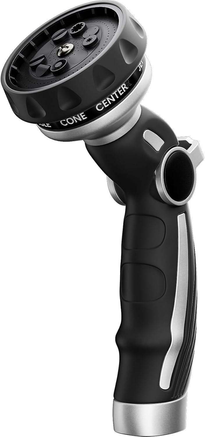 - 【9 Watering Patterns】Rotate the sprayer head dial to select a water pattern from Shower, Flat, Full, Mist, Jet, Center, Cone, Angle and Vertical. Whether you need the high-pressure jet to clean your patio, the useful angle to wash your car, the gentle shower to wash your dog, or the soft mist to water your garden flowers, the 9 patterns have you all covered.