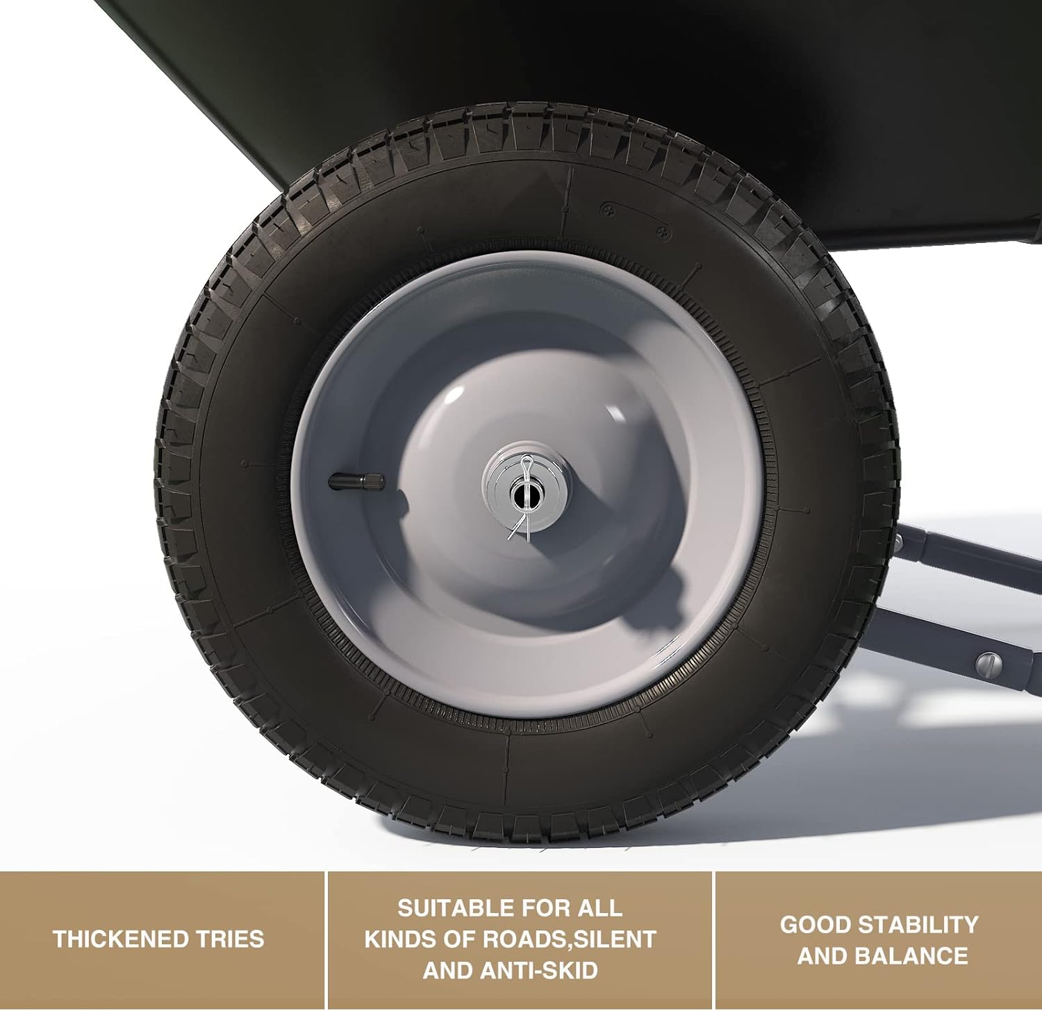 ARNOT Enlarged 2-Wheel Wheelbarrow, Easy Loading and Dumping Garden Cart, Heavy Duty Utility Dump Cart for Outdoor Lawn Yard Farm Ranch, Black