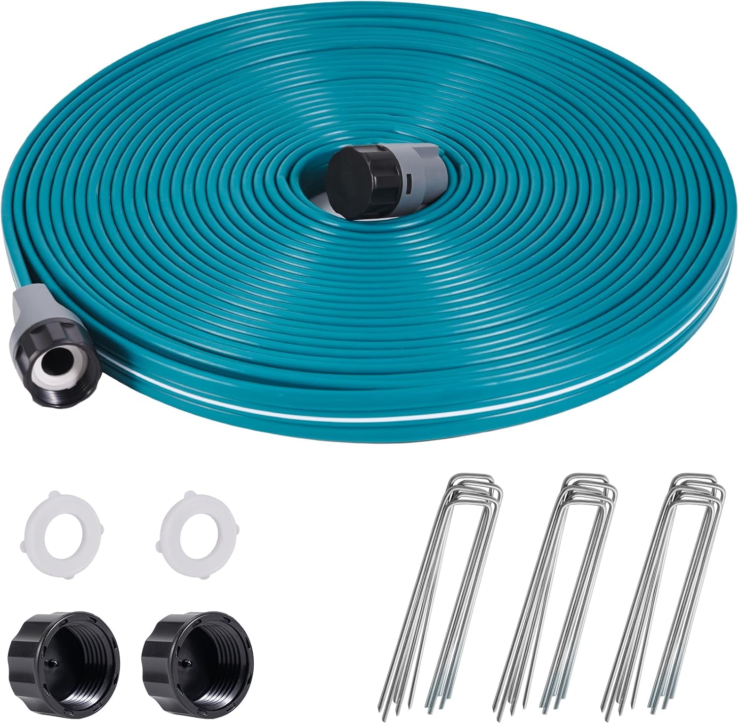 - High durability-This convenient hose has a long life, high tolerance, and UV protection. It also includes a removable end cap that can be used to add length and easy to flush out particulate debris, end caps design allows the sprinkler hose to connect to another hose, it waters gently and the lawn is looking better