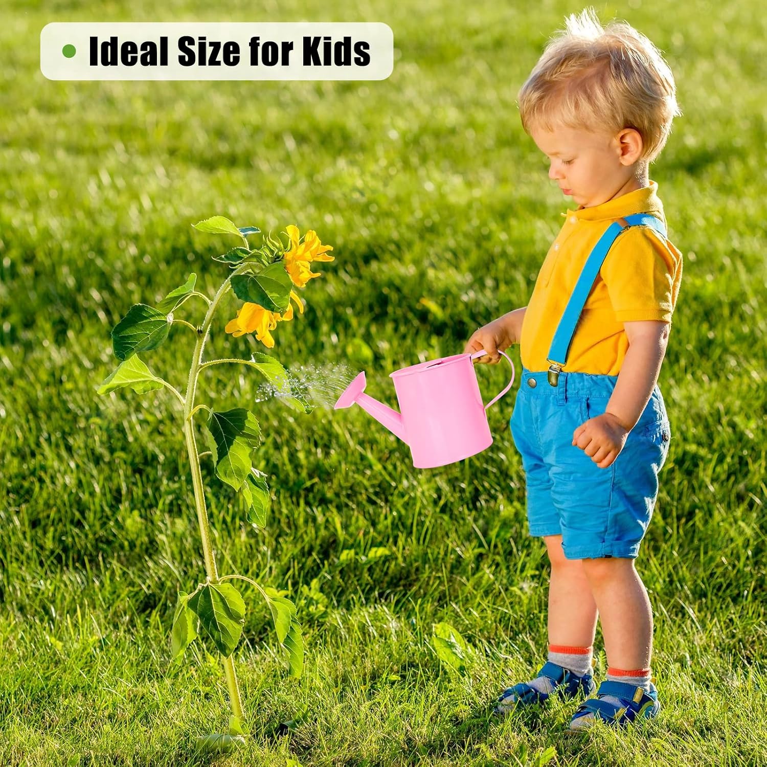Metal Watering Can (1 Gallon) for Outdoor&Indoor Plants with Free Small Watering can for Kids, Plant Watering Can with Removable spout, Perfect for Garden Flower, Houseplants, Pink