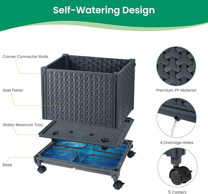 - Premium Material: GREEN MOUNT raised Planter bed is made from durable fade-proof, food-grade safe polypropylene, safe and sturdy, which makes them great for all outdoor areas and all kinds of weather. Can also be used-year-round in an enclosed sunroom