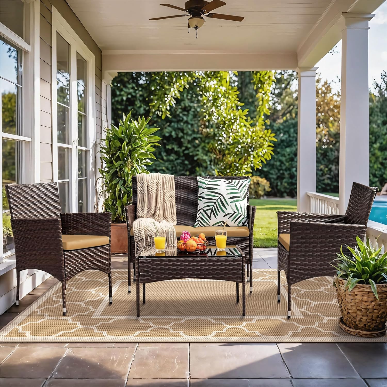 - Stylish Versatility:GENIMO outdoor rugs boast a dreamy design that effortlessly complements any setting. The central space of the outdoor mat serves as a table spot for your patio or a practical surface during camping. Fused borders and elegant patterns make it the perfect indoor-outdoor rug, pairing beautifully with your outdoor patio furniture set to create a harmonious outdoor space.Use it as outdoor fall decor or fall porch decor to enhance the cozy vibes of your space