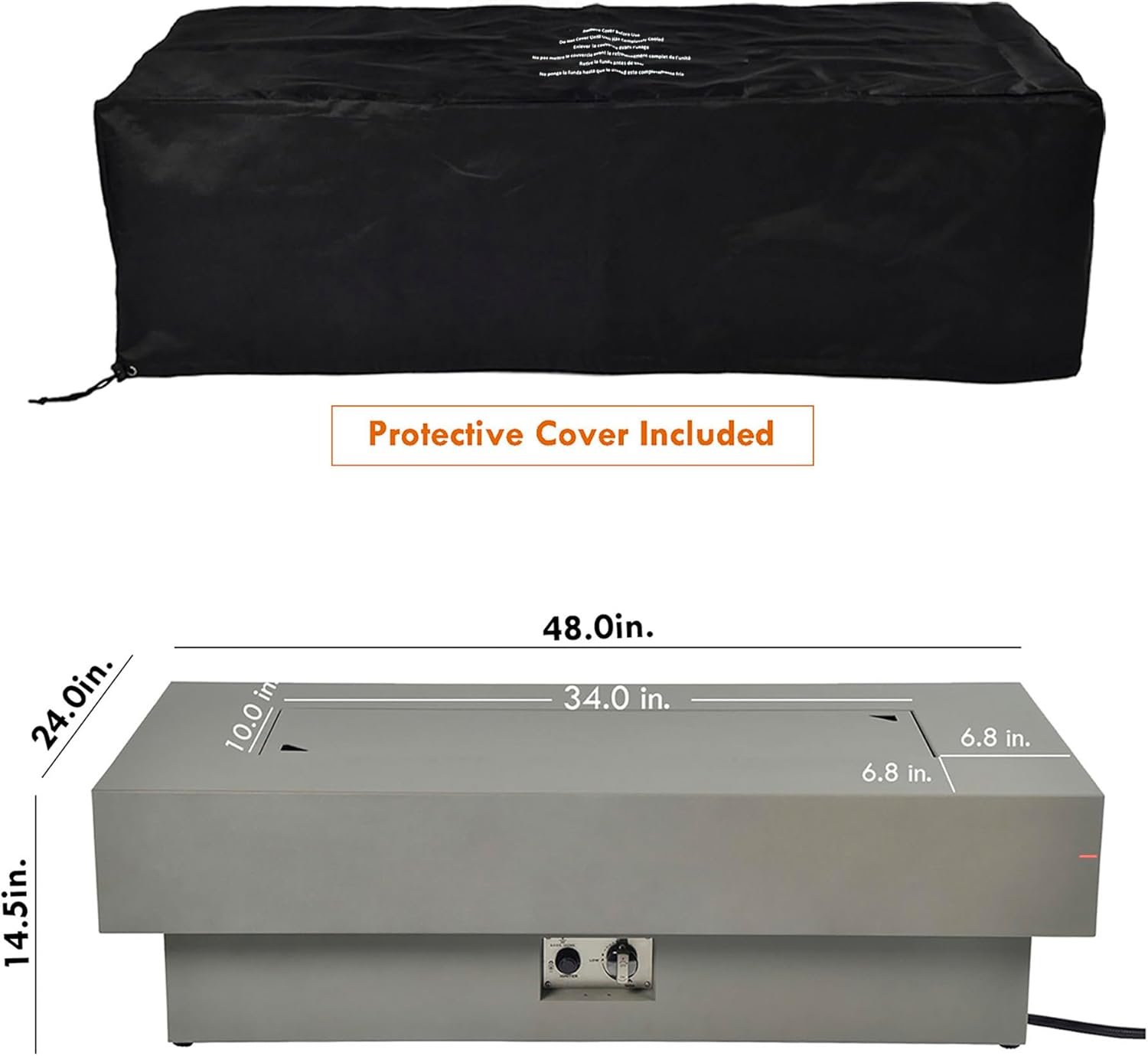 48-inch Fire Table with 20lb Propane Tank Cover, 50,000BTU Outdoor Modern Patio Fire Pit Table w/Rectangular Burner Lid, Glass Rocks, Pre-Attached 10ft External Gas Hose