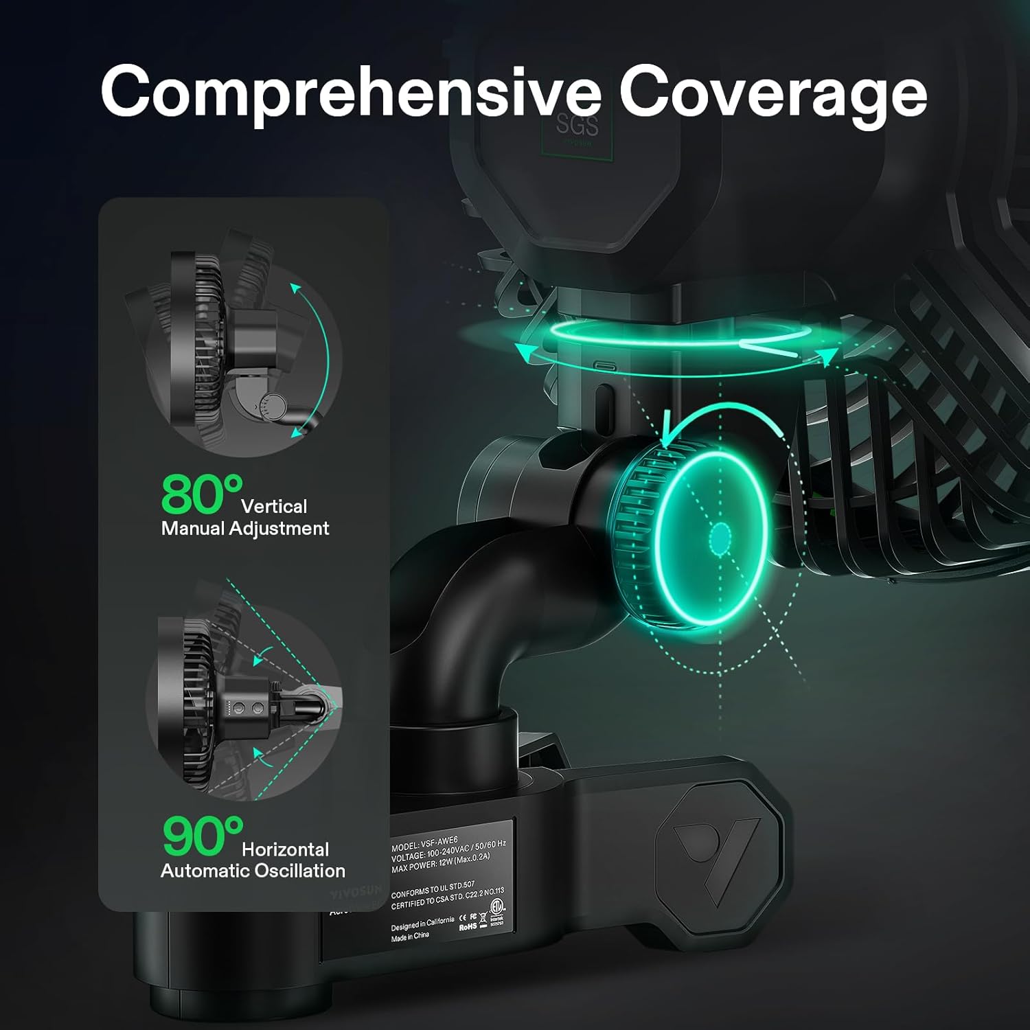 VIVOSUN AeroWave E6 Gen2, Grow Tent Clip Fan 6”, EC Motor, Smart Control, Powerful Oscillating Fan, Local Timer, Weatherproof IP54, for Hydroponics Circulation Cooling, Black