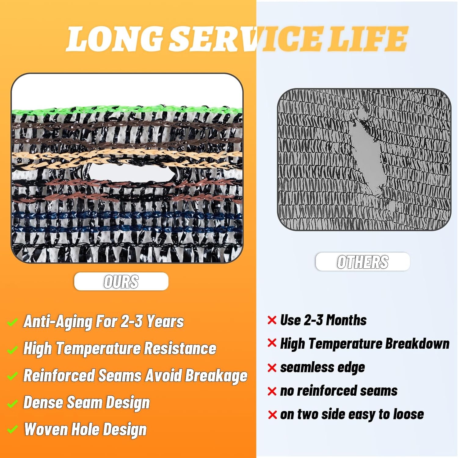 - 【Special Woven Hole Design】Made with new high density polyethylene (HDPE) material which Provides extra convenience for installation, garden shade cloth can block 40% of the sun and provide UV protection.
