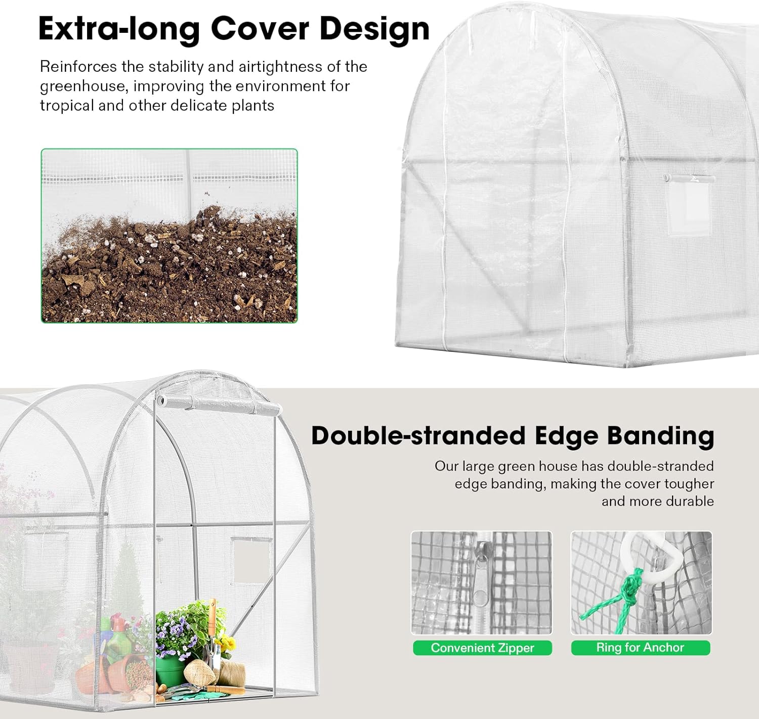 VIVOSUN 10x7x7 Ft. Large Walk in Greenhouse, Greenhouse Tunnel, Garden Plant Hot House with White PE Cover, Roll-up Zipper Door and Window for Outdoor, White