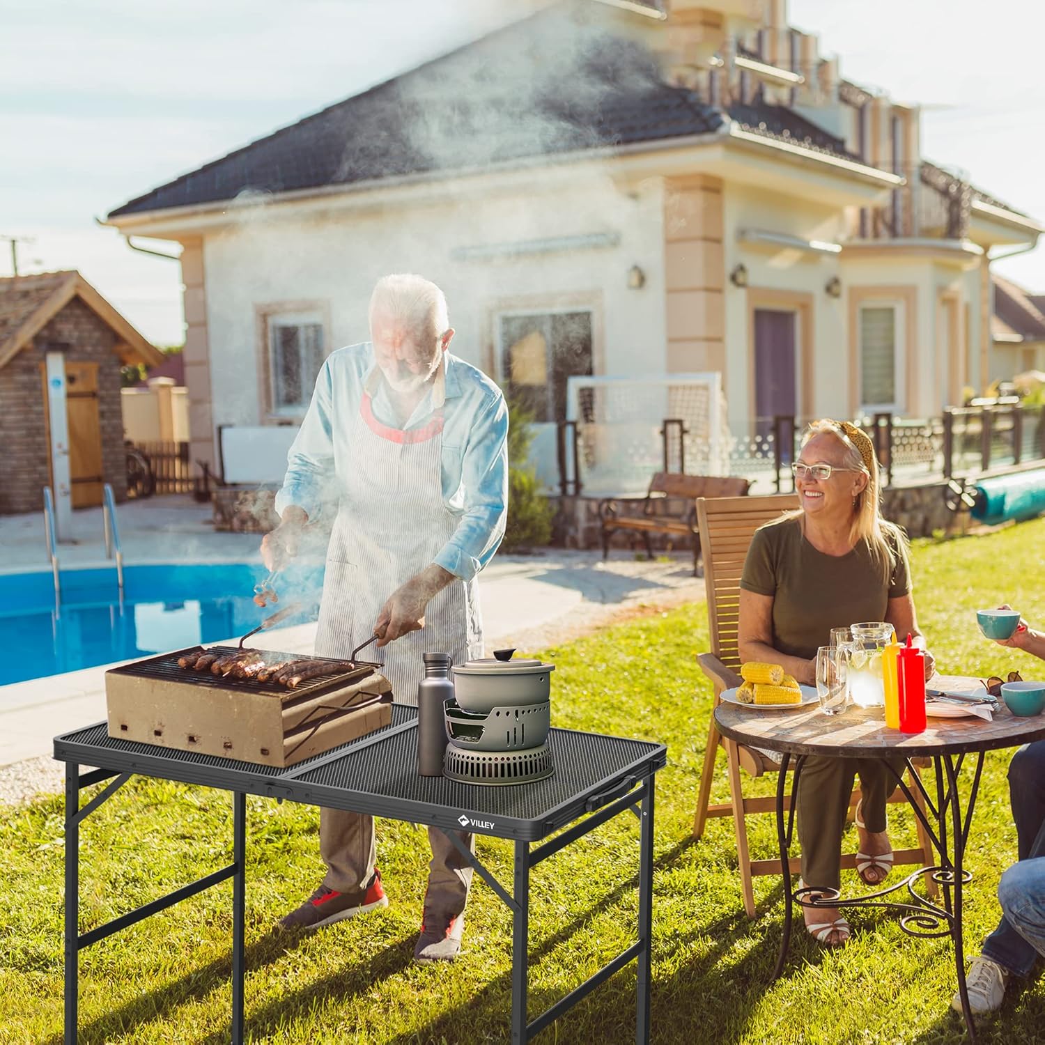 VILLEY Grill Table, 3ft Folding Camping Table with Aluminum Adjustable Legs, Portable Lightweight Camp Table for Beach Picnics and Outdoor Cooking