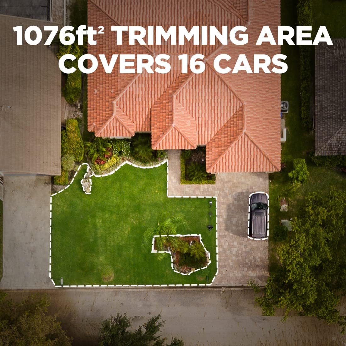 - 【Covers 1076 ft² Per Charge】On a full charge, this cordless grass trimmer can cut up to 1076 square feet—about the size of 16 cars. Great for most home lawns.