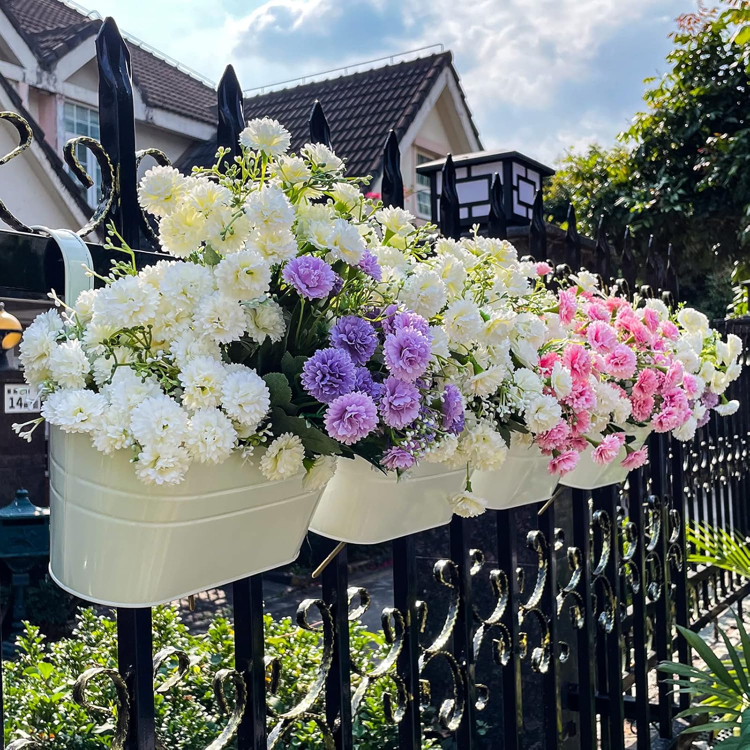 OGIMA 4pcs Hanging Flower Pots, Metal Iron Wall Planter Indoor/Outdoor for Railing Fence Balcony Garden Home Decoration with Detachable Hooks