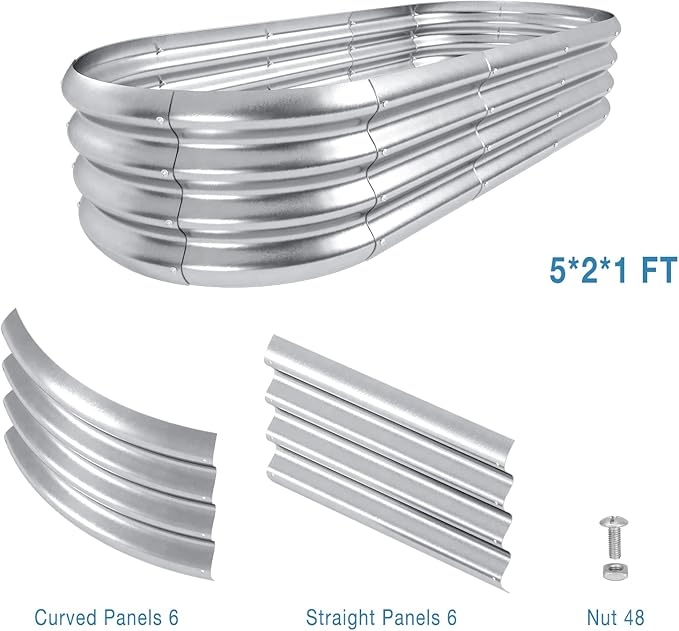 HOXHA Planter Raised Beds, 5X2X1 FT Land Guard Oval Galvanized Steel Planter Box, Metal Raised Garden Bed kit, for Outdoor Growing Fresh Veggies, Flowers, Herbs, and Succulents