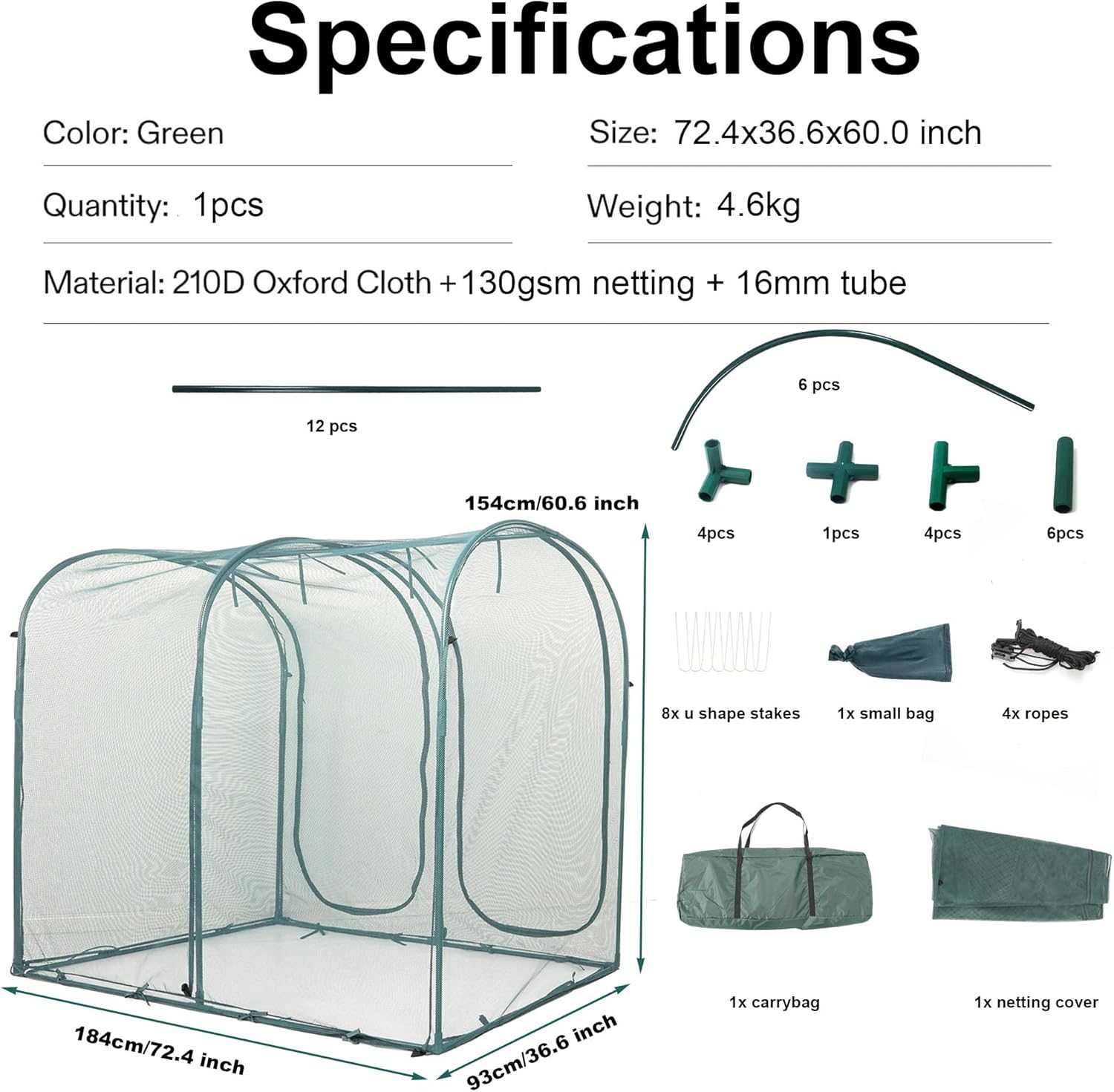 - Large Size & Portable Packaging-Square bottom 154x93cm and height is 184cm and weight each cage has 4.6 kg ,the netting cage can be put in 90cm carry bag easy to portable
