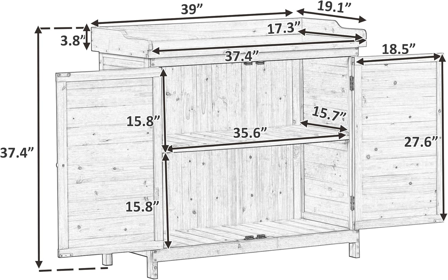 - Premium Fir Wood Potting Bench: Spring is coming! And are you ready for replenishing your garden? Made of 100% fir wood, which is good for dimensional strength and durability, this potting bench will help you a lot. Constructed with a stable structure, it will hold 44 lbs for tabletop and 22 lbs for cabinet shelves.