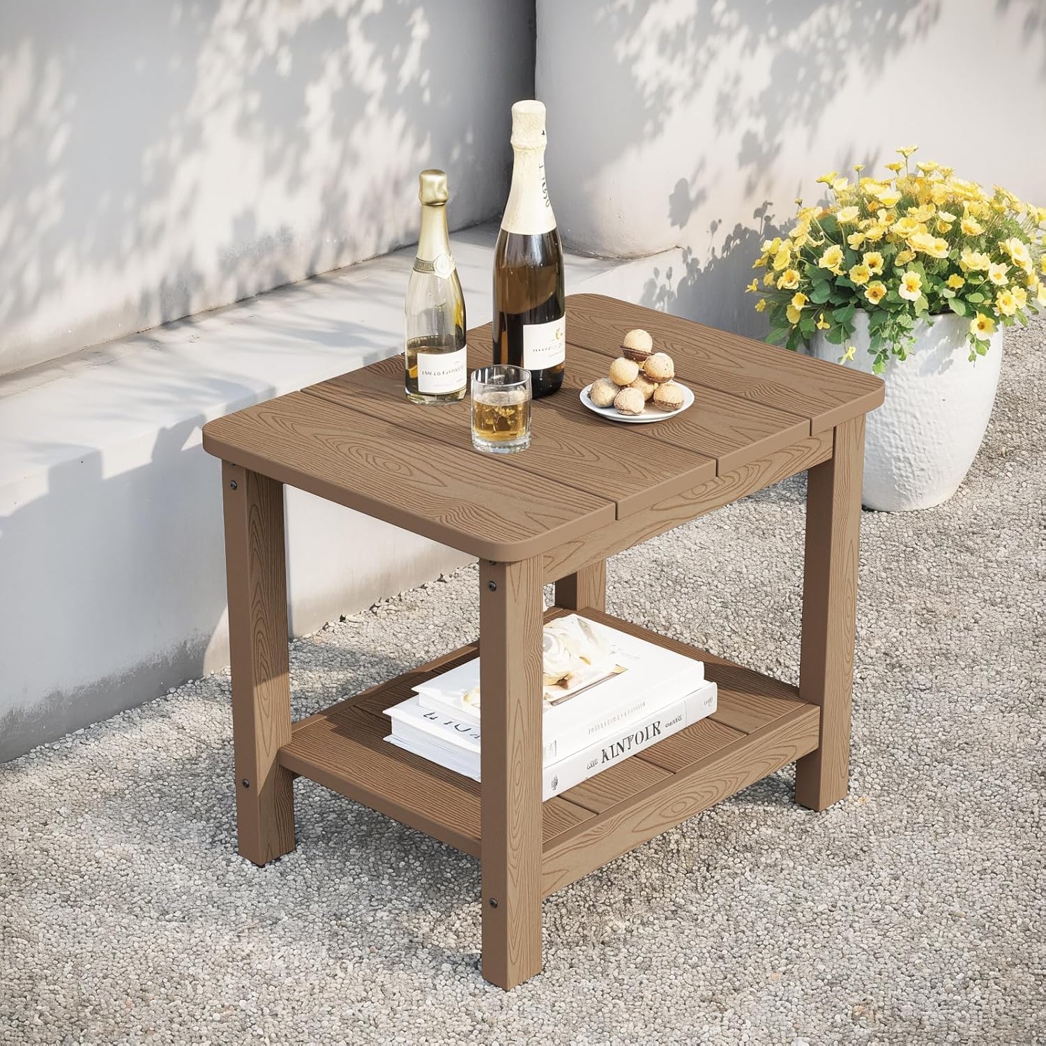 - 【Outdoor Furniture Set】Includes 2 teak patio chairs and 1 teak oversized side table.