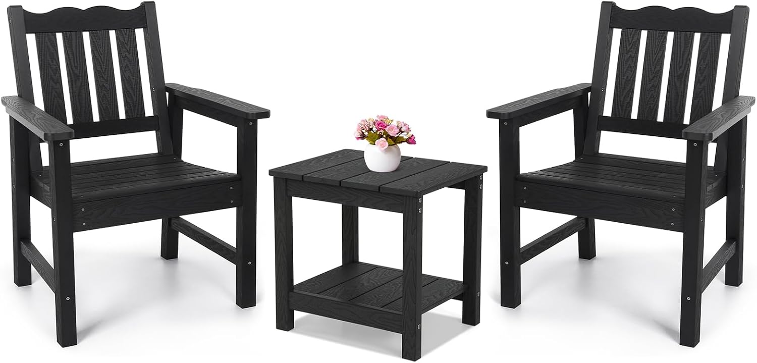 Stoog 3 Piece Patio Bistro Set, All-Weather Garden Chairs Set of 2 with Table, 400 lbs Support Garden Chair, Black