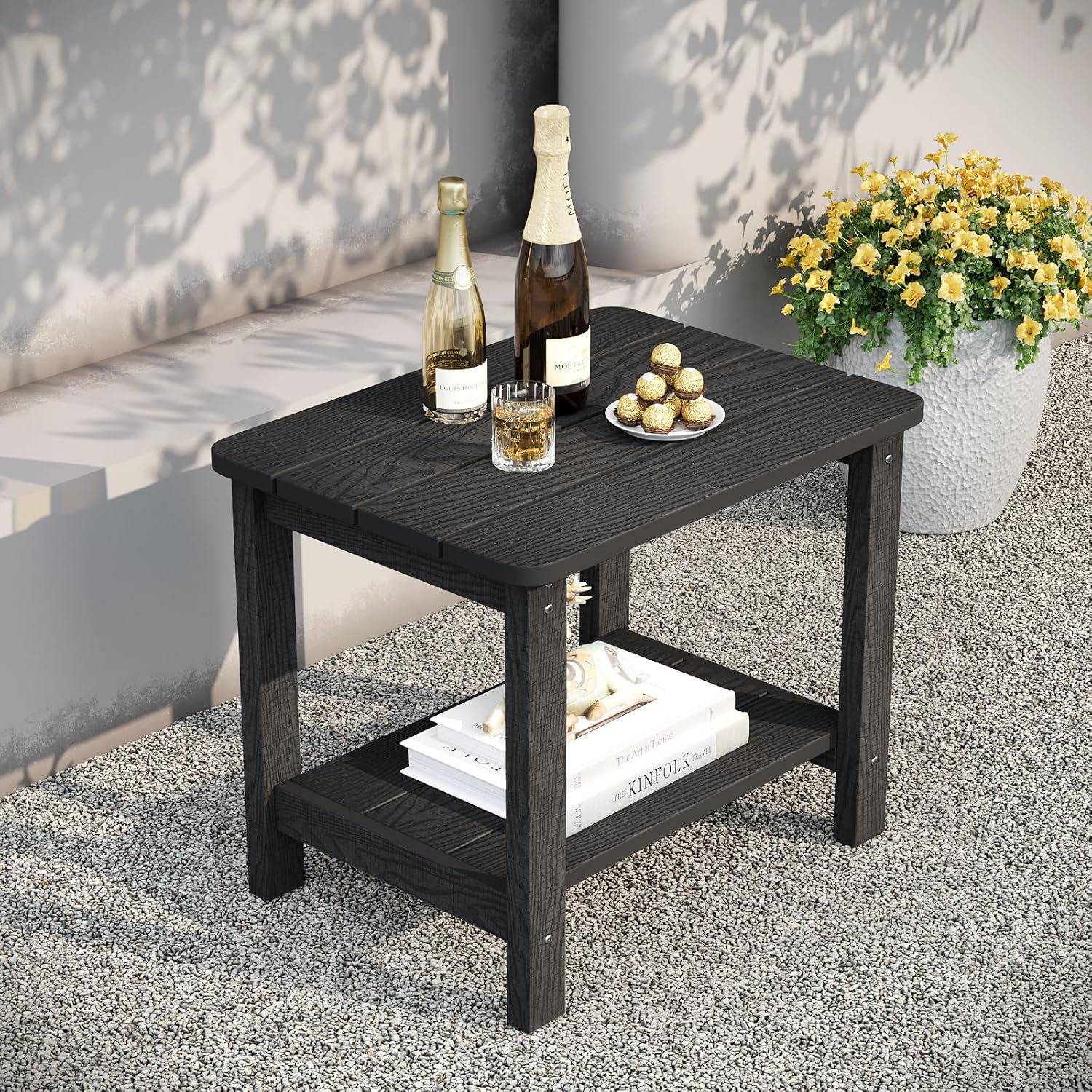 - 【Outdoor Furniture Set】Includes 2 black patio chairs and 1 black oversized side table.