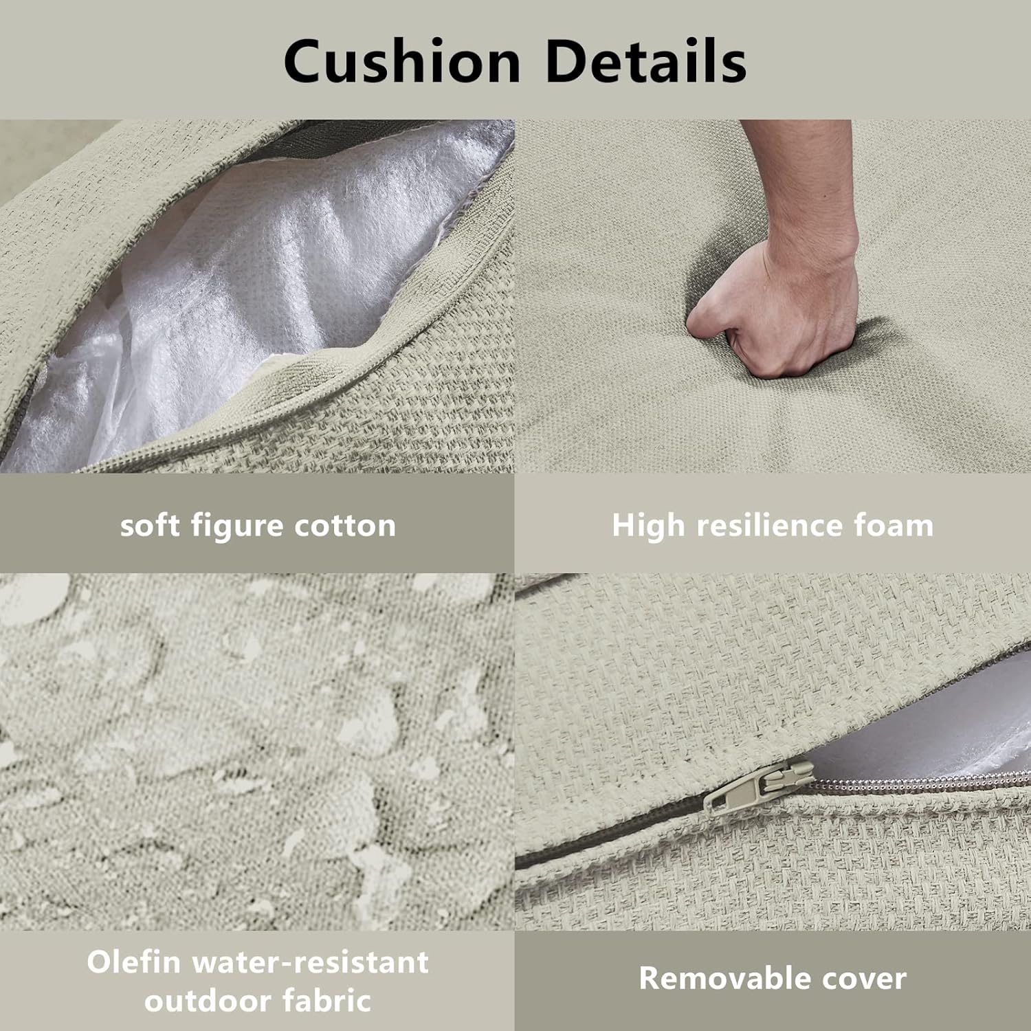 - 2.High Quality Cushions: The cushion cover with zipper is removable and washable with a special protective layer on top to provide exceptional water and sun protection for long-term use on outdoor patios, front porches, balconies, back gardens and decks.