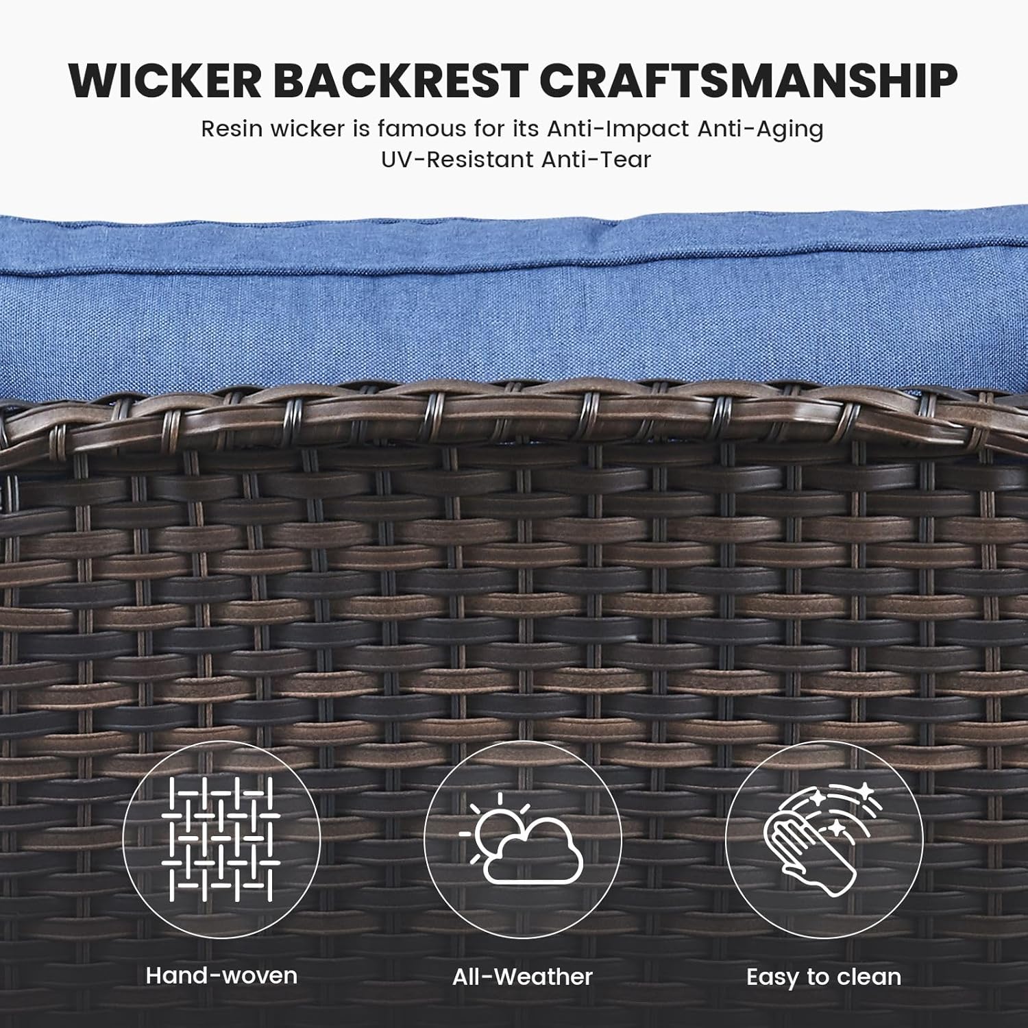 - 3.Durable Material: This outdoor wicker sofa is made of hand-woven weather-resistant PE rattan and powder-coated steel frame, which makes the sofa couch stronger and more durable. The wicker sofa can hold up to 900 pounds of weight capacity.
