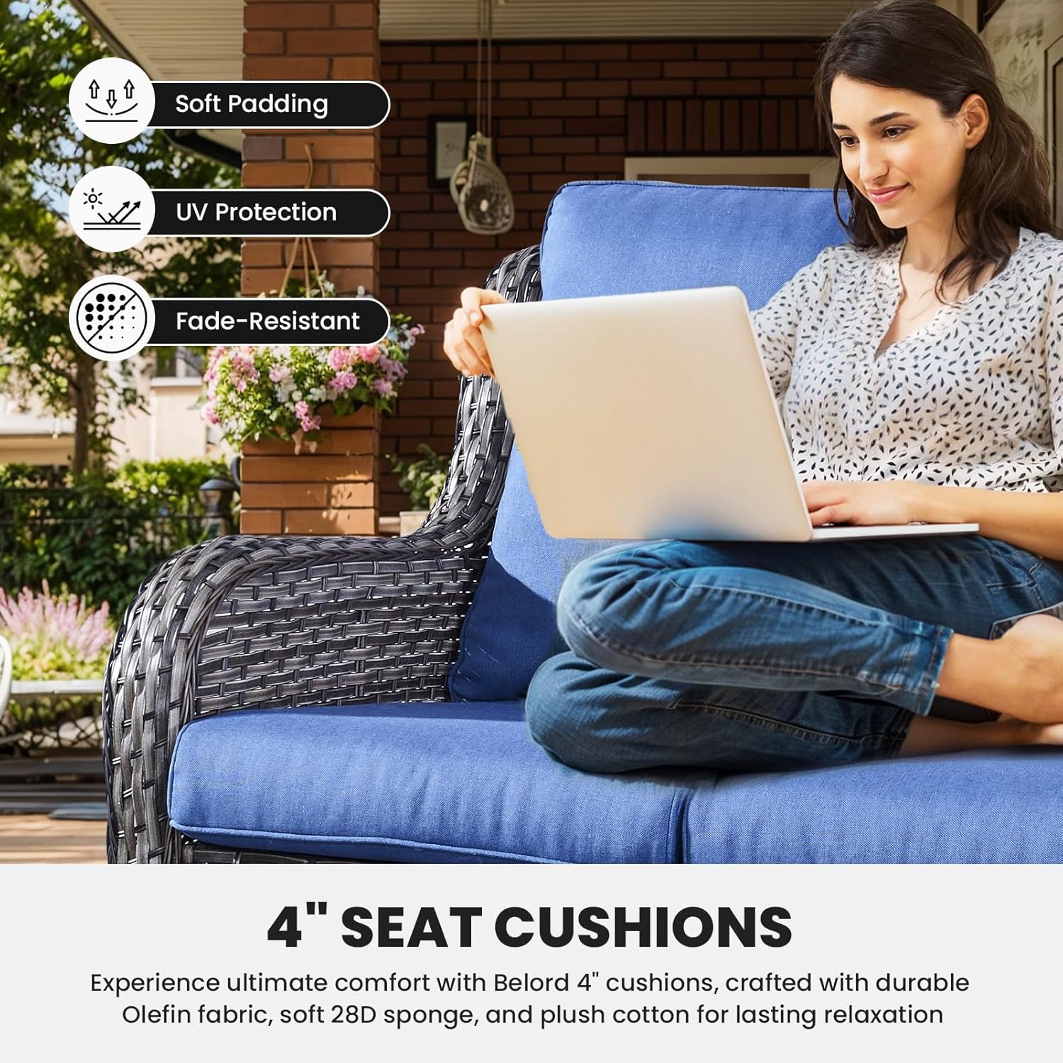 - 4.Ergonomic Design: The patio sofa sets are designed with the curve of the human arm, the armrest width is 4 inches, and the back of the chair has a 15-degree tilt design, which will make our arms and back more comfortable and relaxed.