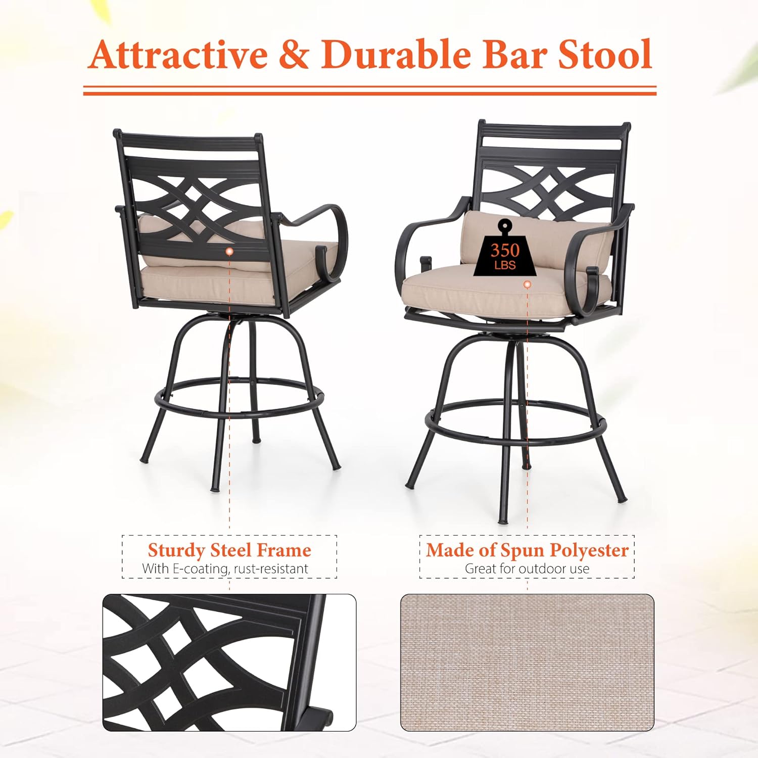 - Premium Material: E-coating metal steel frames ensure the longevity of this outdoor bar set. Rust resistant weather resistant, sturdy, durable and polished elegant, bring you years of enjoyment