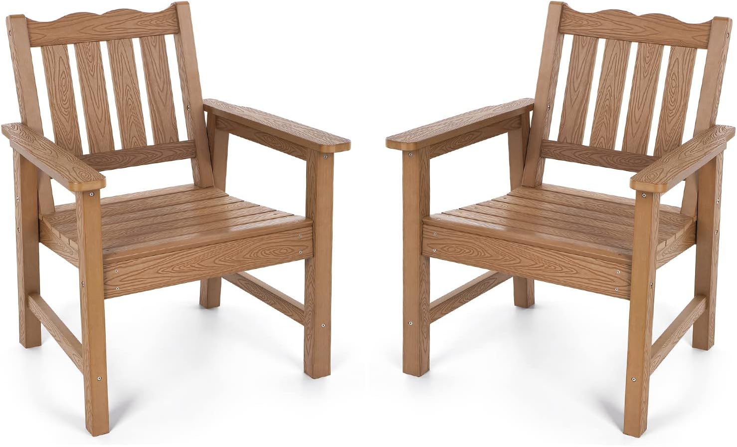 Stoog All-Weather Patio Chairs Set of 2, Oversized Garden Chair with 400 lbs Weight Capacity, Easy to Assemble, Outdoor Chair for Patio, Backyard Deck, Fire Pit & Lawn Porch, Teak