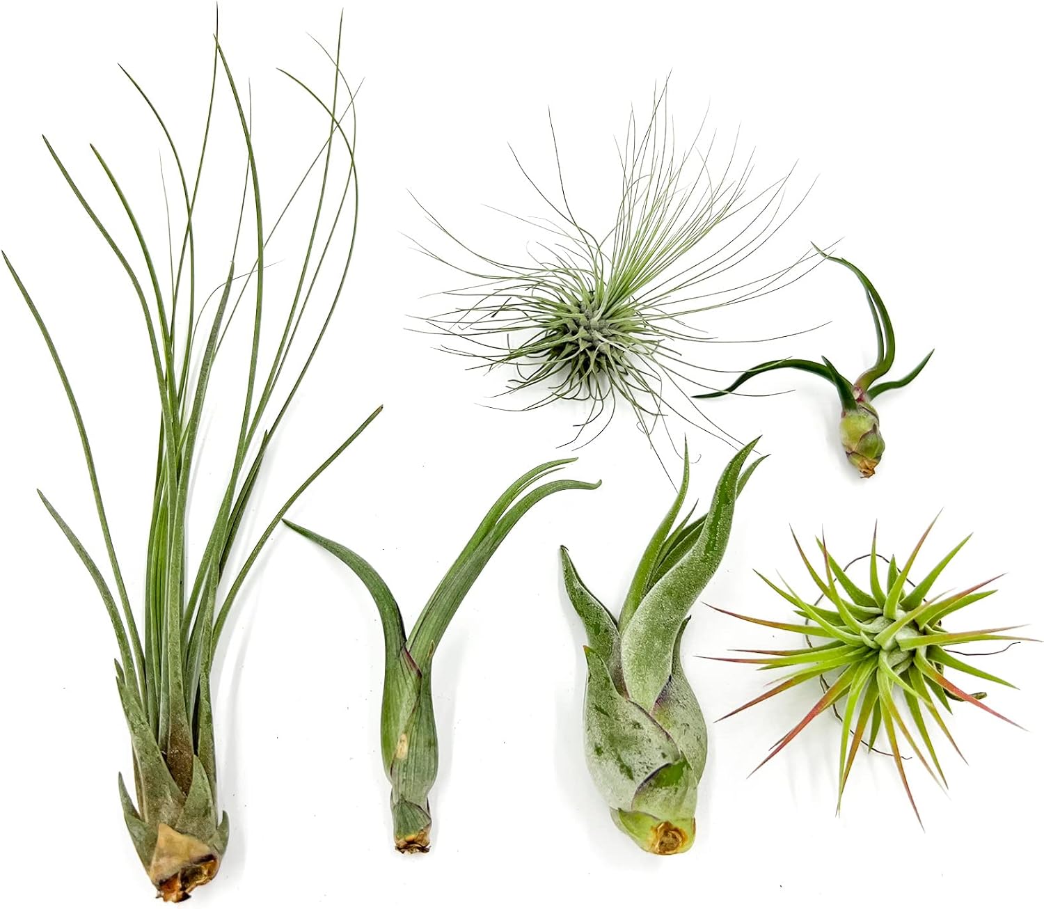 - LIVE AIR PLANT: Includes a variety of 6 air plants which may include Juncea, Argentea, Caput Medusae, Ionantha, Fasciculata Tricolor, Bulbosa, and/or Butzii ranging from 1-6" in size in recycled packaging with a ragnaroc Care Card. This is a true air plant variety pack with the most interesting shapes, colors and textures.