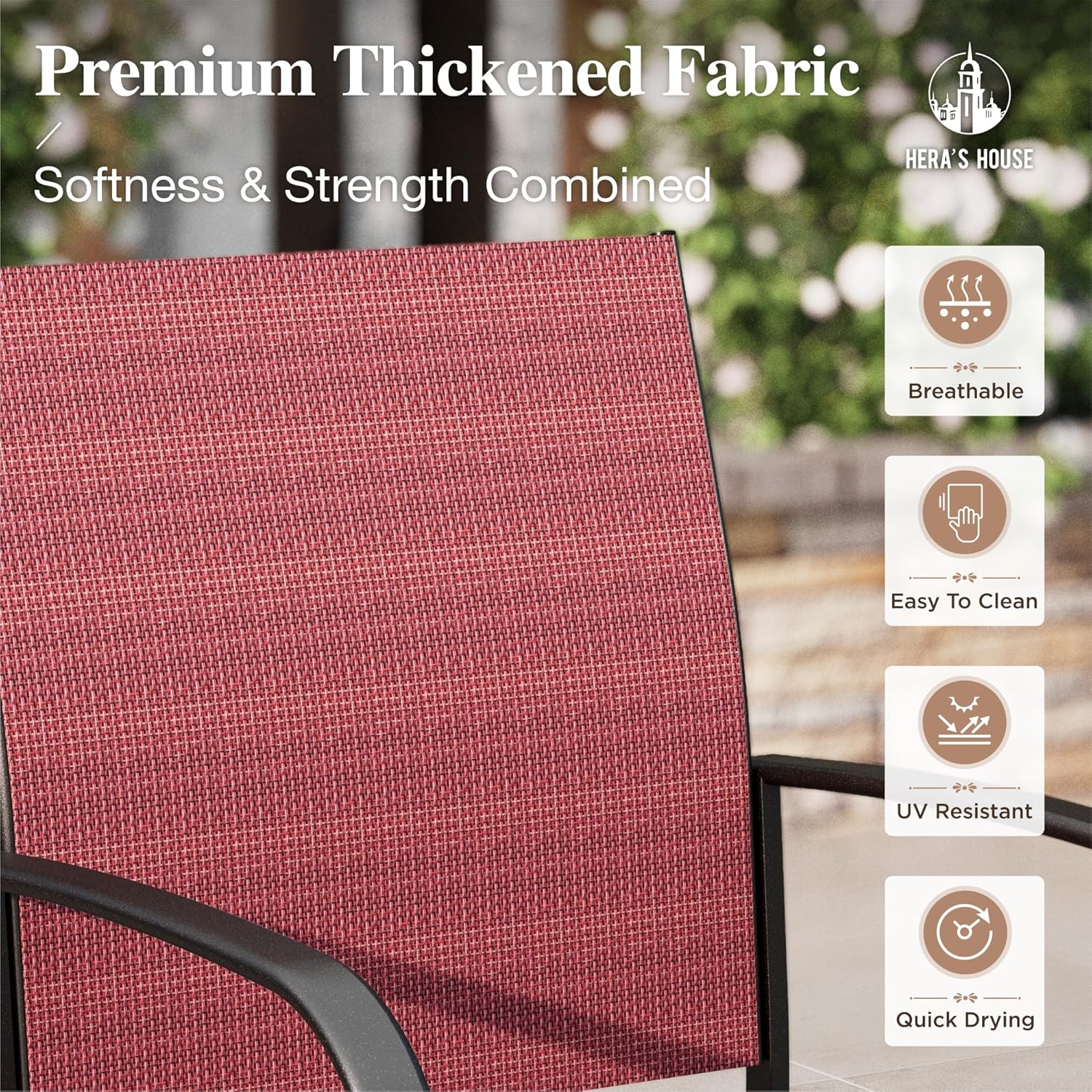 - 【TEXTILENE FABRICS FOR ALL WEATHER】100% 550GSM quality thicken textilene fabrics,durable, waterproof, breathable and all weather resistant; easy to clean and care, UV resistant and no fading for long lasting.