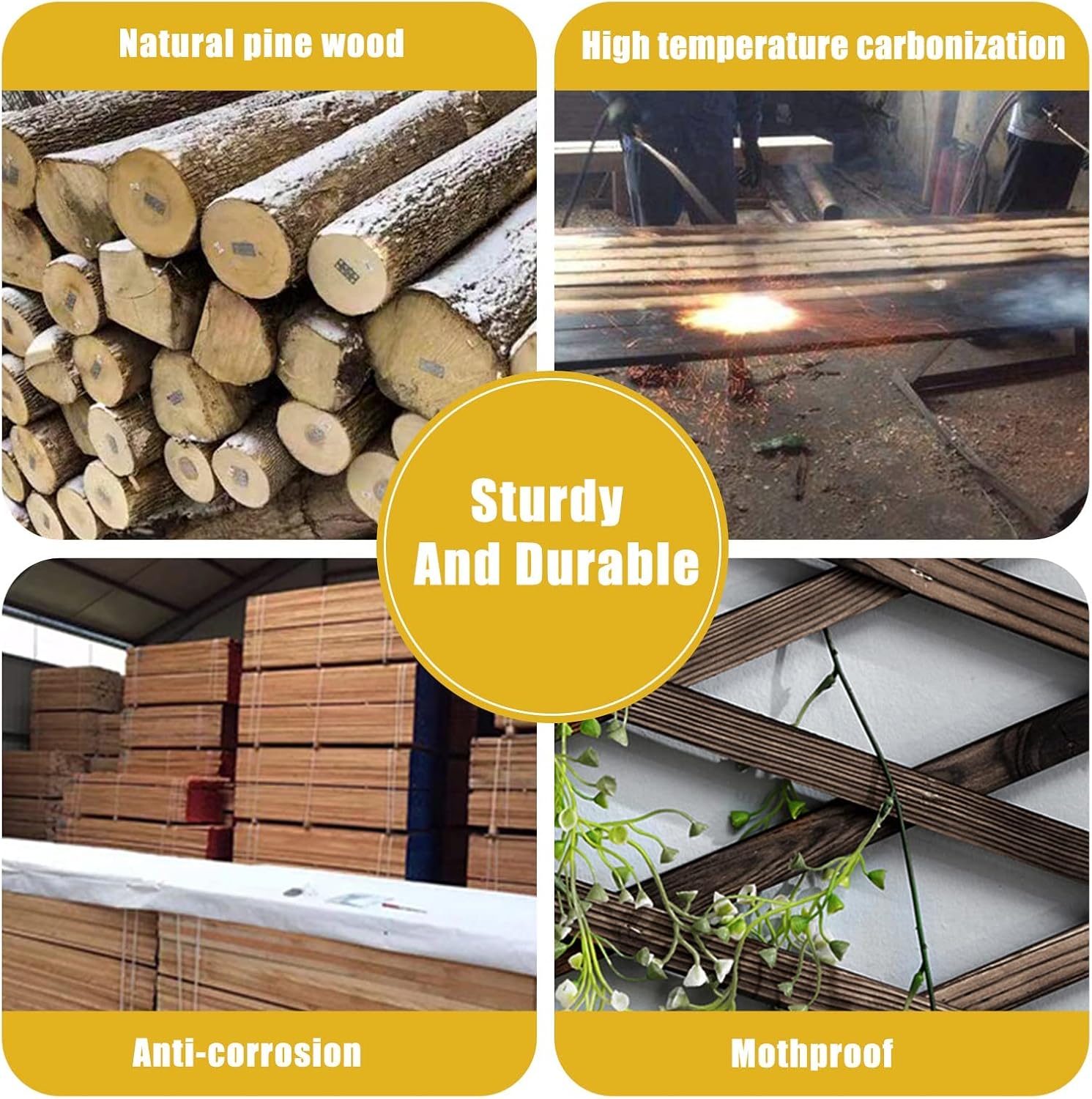 - 【Natural Wooden Trellis】: The carbonized lattice is waterproof, durable, and aesthetically pleasing, retaining the natural wood grain to enhance its visual appeal. Ideal for light climbing plants and decorative use, it suits a variety of settings such as balconies, gardens, courtyards, and both indoor and outdoor spaces, combining both function and style.