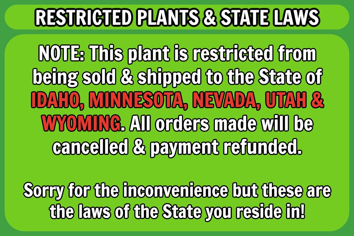 - [GREENWOOD GUARANTEE] - We strive to satisfy customers with their purchase, please contact us WITHIN 14 DAYS of receipt to sort out any issues with the order! We take full responsibility for our mistakes, however proof will be required for other issues & buyers are responsible for user error! Make sure you are purchasing from our GREENWOOD NURSERY store to avoid any issues, you will know your package is from us with our Logo on the Plant & in/on the Box.