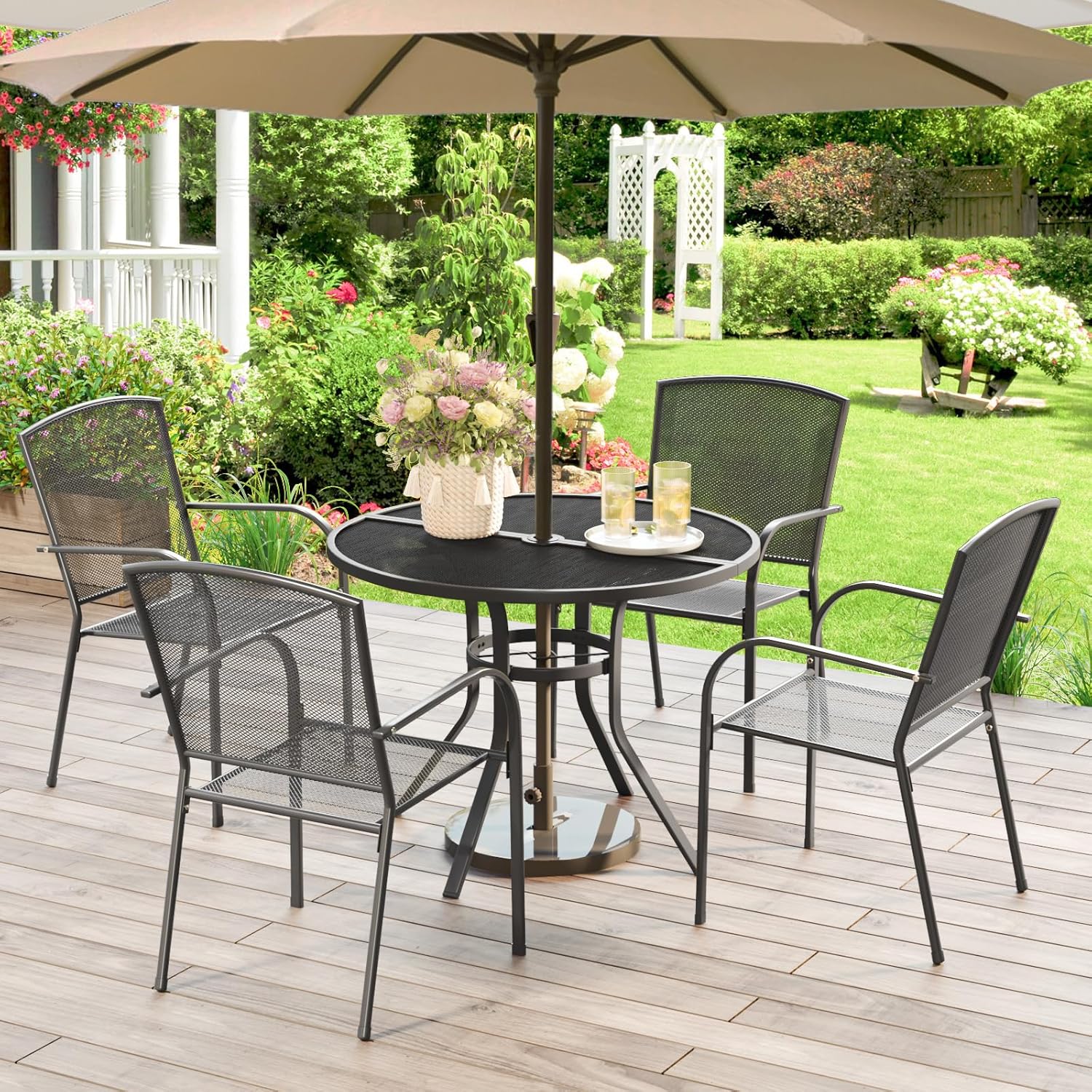 AECOJOY Outdoor Patio Dinning Table for 4, 37" Round Metal Patio Tables with 1.7" Umbrella Hole, Weather-Resistant Outside Table for Lawn Backyard Garden Porch Bistro Poolside Deck Dark Grey