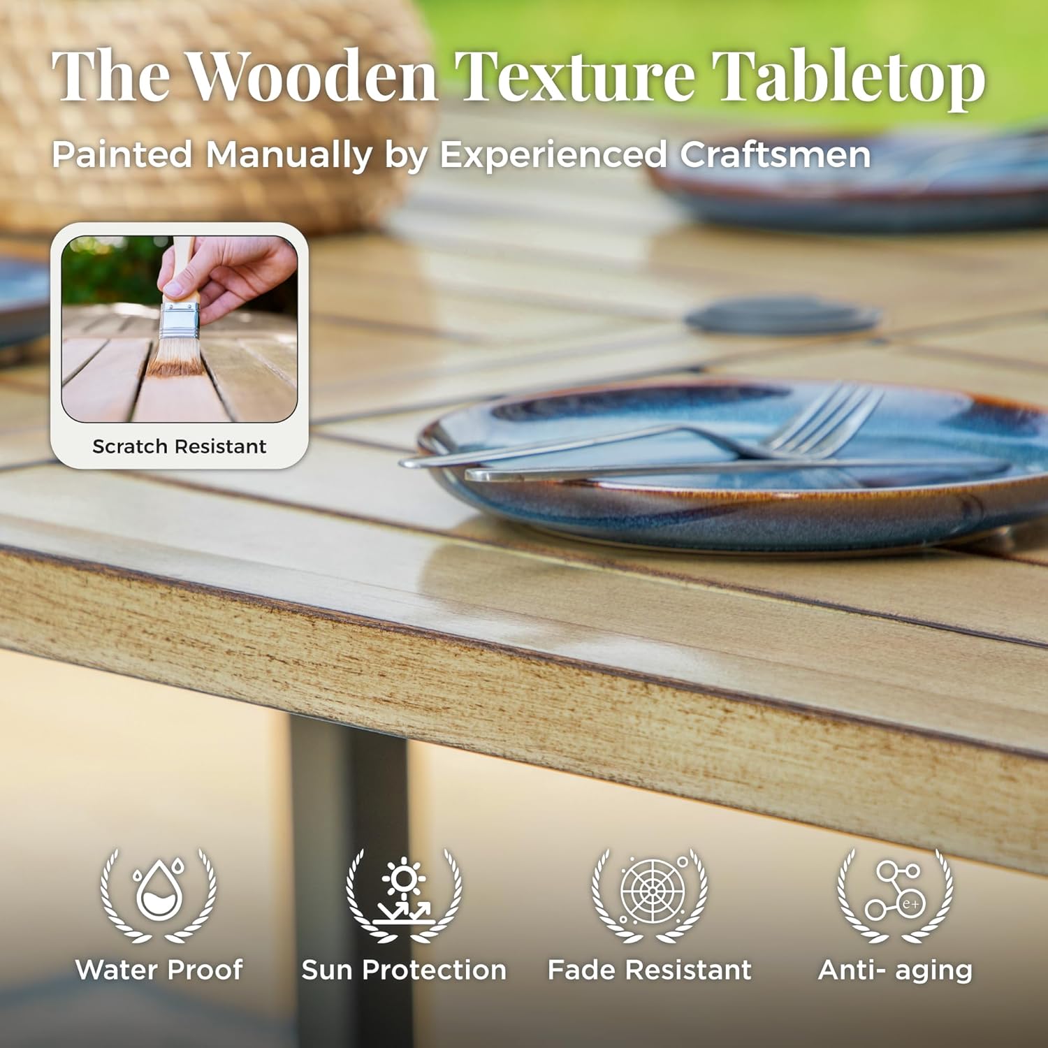 - Superior Material: Solid patio dining table with powder coating against rust and paint off, specifically for outdoor use. This metal dinning table is strong enough to withstand the rain, sun, and wind