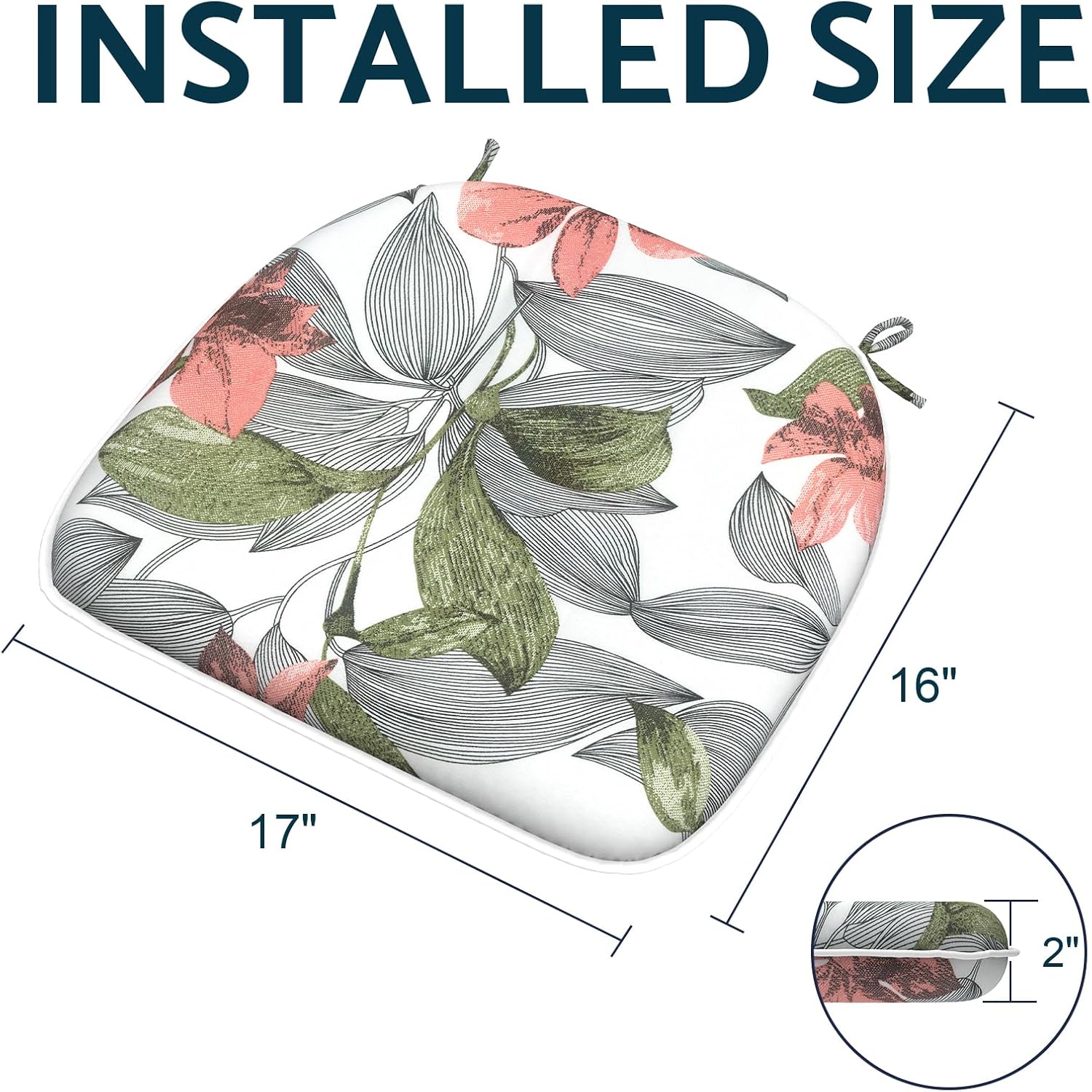 - U-shape Design: Contains two patio furniture cushions that measure 17”x16”x2”, fit for dining chairs, outdoor chairs and hard chairs that need extra comfort. All Twlear cushions come with a one-year warranty to ensure you can choose and enjoy with confidence.