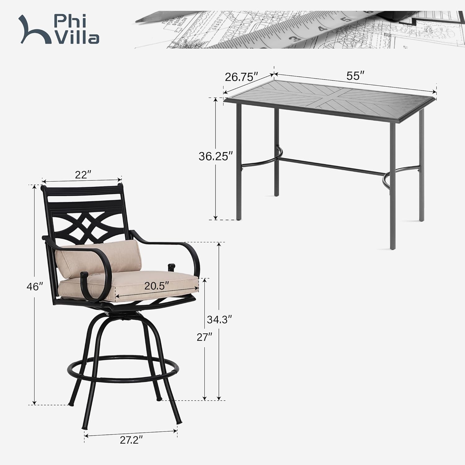 - Extra Large Outdoor Stools: We widened and enlarged the seat to 20x20 in, that makes the ourdoor stools are suitable for all bodyshape customers. We firmly believe that beauty is diverse, therefore, our products should be more diverse