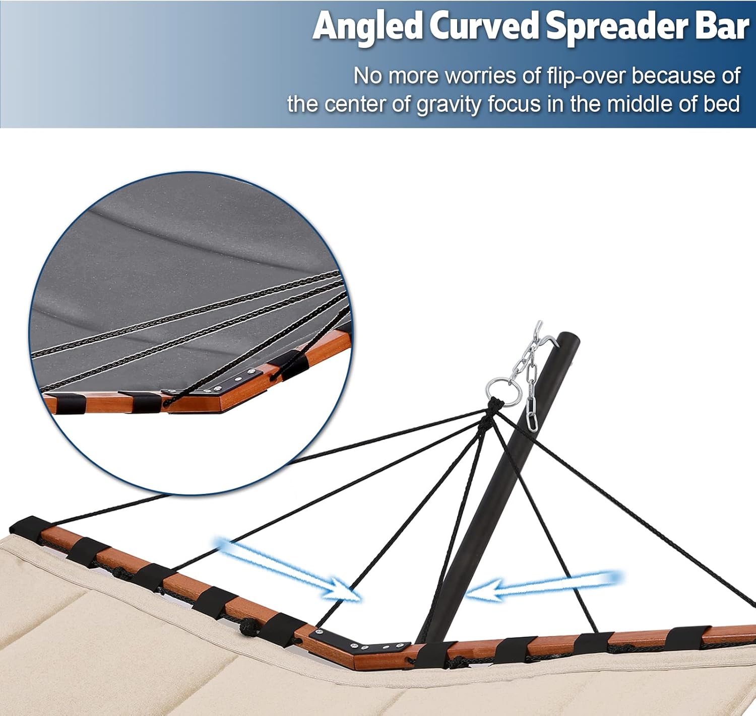 - ★Anti-flip over Design with a “V” Curved Spreader Bar: TegerDeger believes in Better Design brings Better Comfort. The angled curved spreader bar will concentrate the center of gravity into the middle. No more flip-over worries when you lay on this hammock.