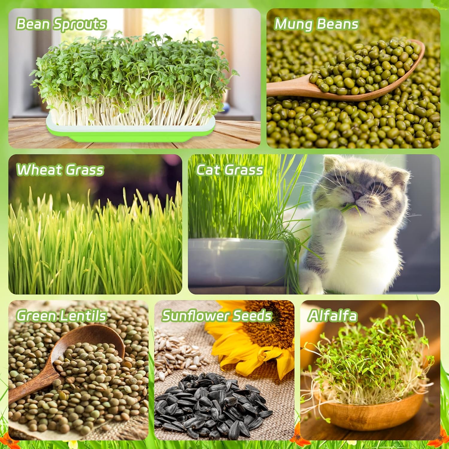 - Wide Application: The sprouting tray is perfect for sprouts Micro-Greens of seeds, such as such as mung, wheatgrass, cat grass, peas, vanilla, radish, perilla, peanut, radish, alfalfa, and other microgreens seeds indoor and outdoor
